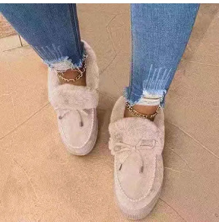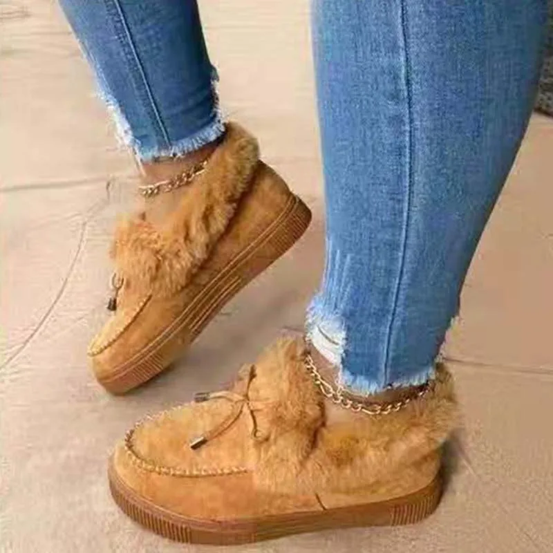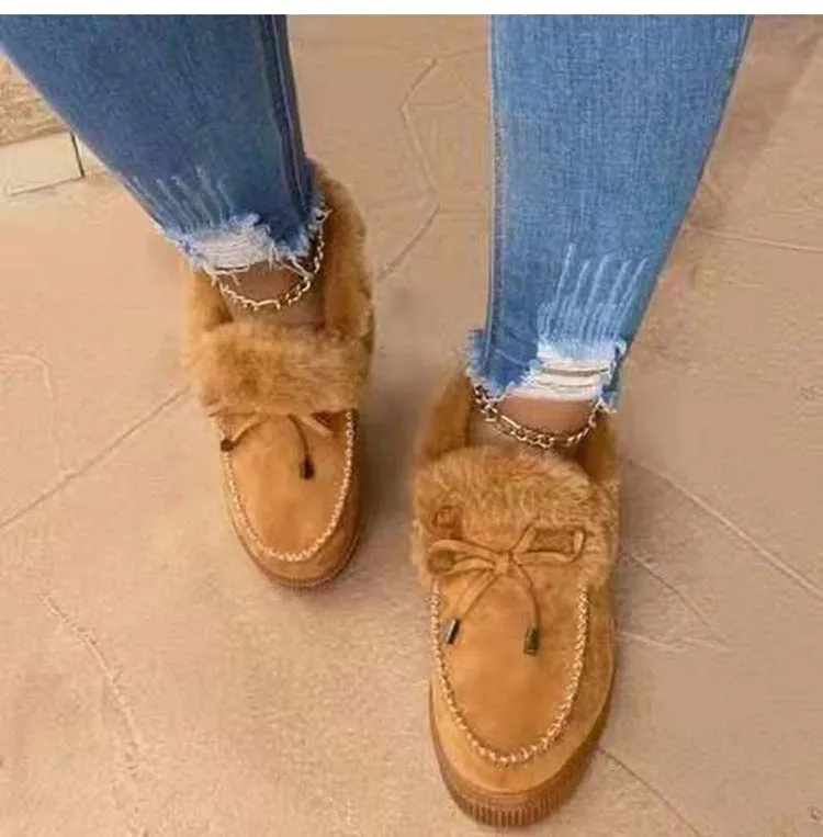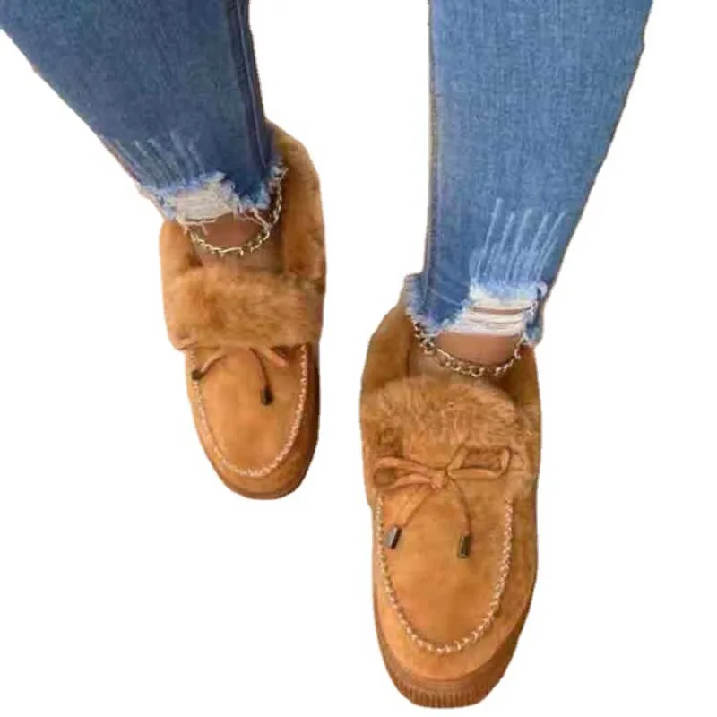 Женские Водонепроницаемые меховые туфли на плоской подошве, зимняя ...