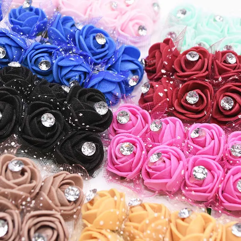 144 шт. Искусственные Алмазные цветы, украшение из пенополиуретана, роза, мишка тедди, искусственные розы, цветы сделай сам, скрапбукинг, свадебное украшение для дома