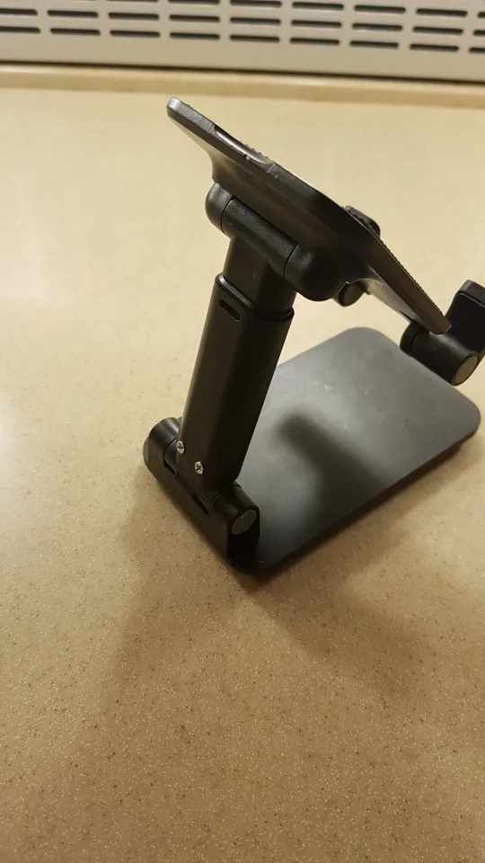 Я был очень скептичен по поводу того, что этот держатель держит планшет, и я не мог найти фотографию, когда я купил его, поэтому я думал, что сделаю несколько фотографий, чтобы вы могли увидеть для себя. Это 10-дюймовый планшет samsung, он держит действительно приятный и безопасный. Должен сказать, что мне очень нравится эта подставка, и я могу даже заказать еще один для хранения или использования в другом месте: o) очень доволен моим заказом: o) о, это также очень удобно для телефона; o)