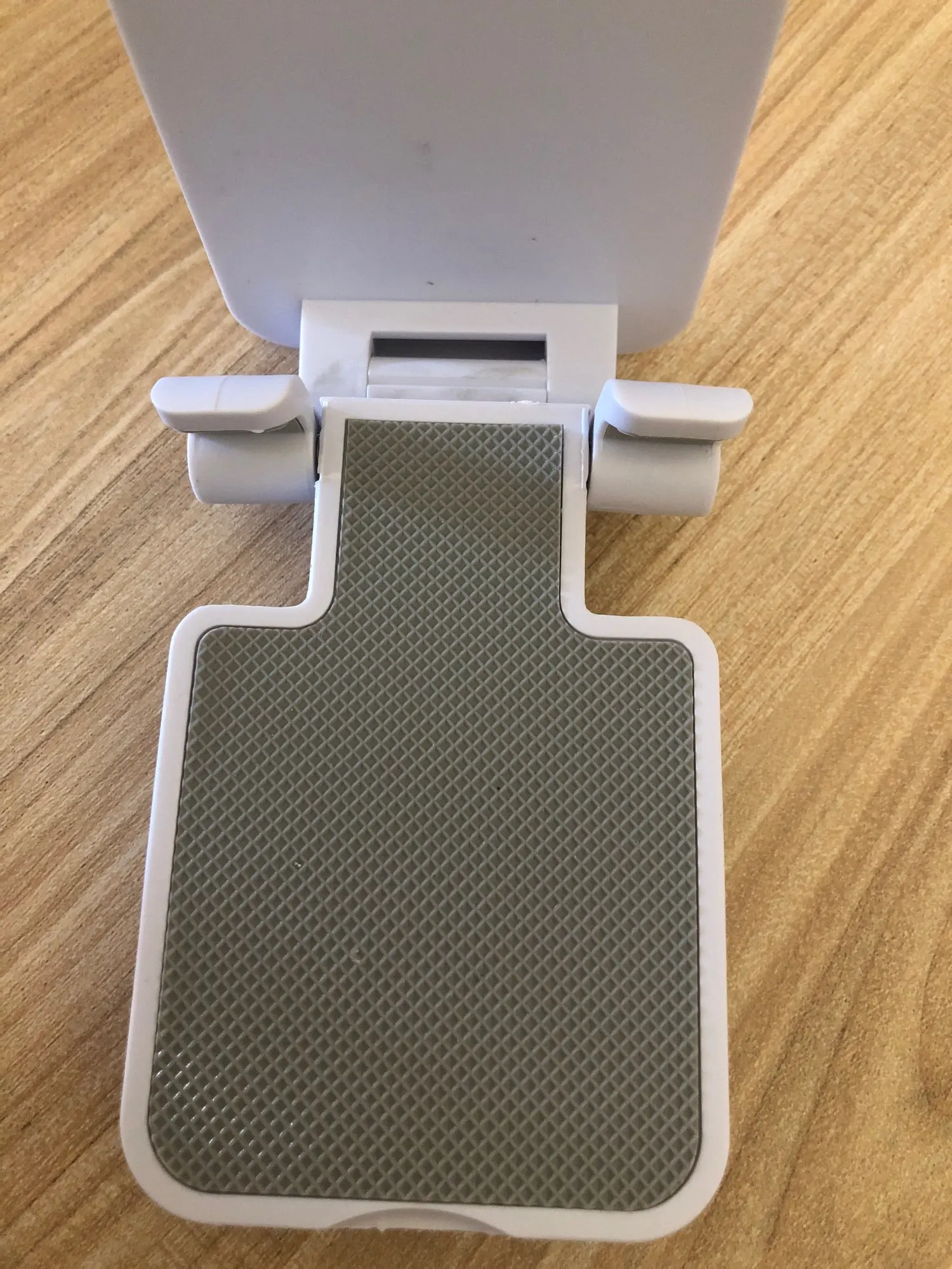 Хотя держатель выполнен полностью из пластика, но механизм складывания и фиксации, похоже, надежный. По крайней мере, пока нареканий нет. Единственное замечание у меня возникло к плохо приклеенной серой резиновой накладке. На фотографии видно, что ее края начали отходить от основания. Придется самому переклеивать эту накладку.