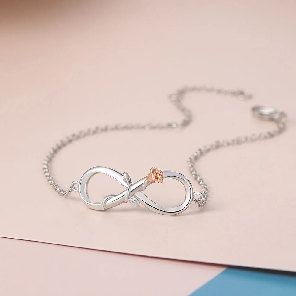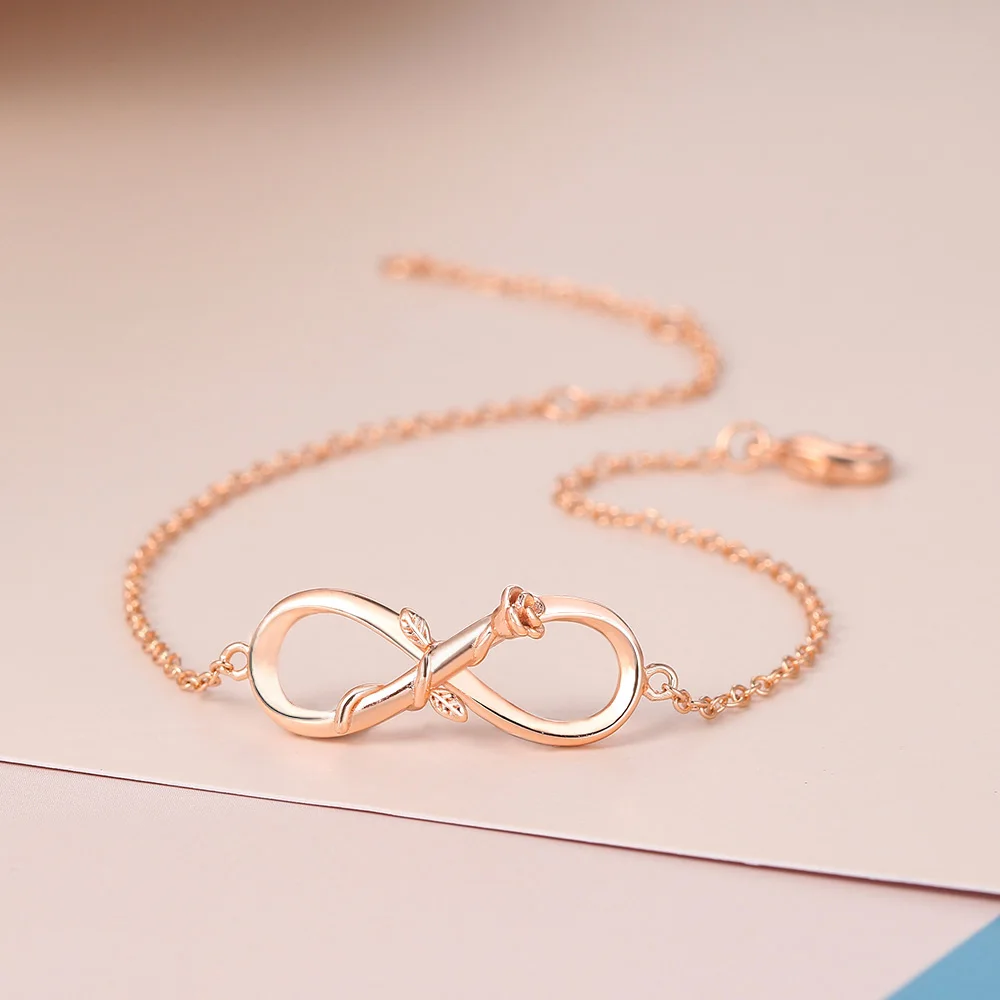 ZHOUYANG бесконечная Роза, очаровательные браслеты для женщин, двухцветное покрытие, цветок, номер 8, браслет, цепочка, оптовая продажа, ювелирные изделия H025