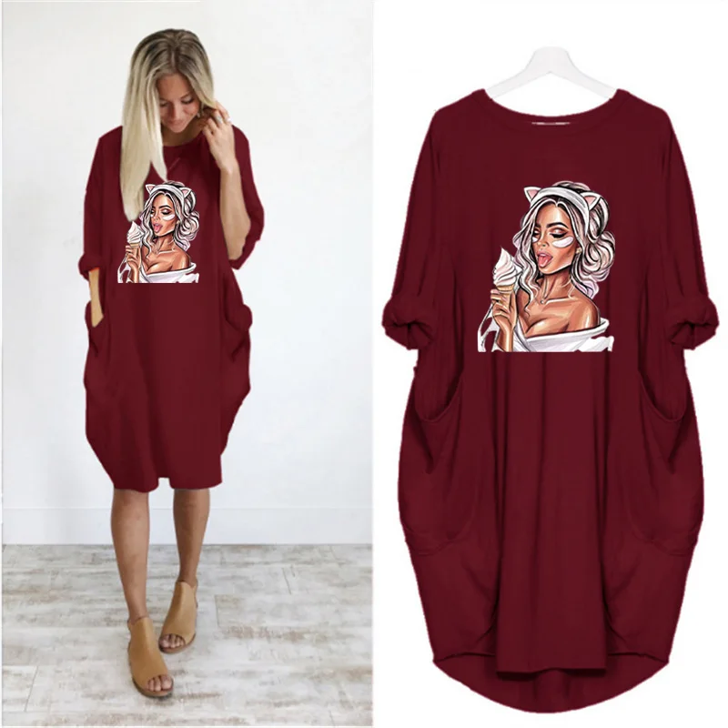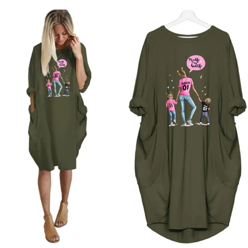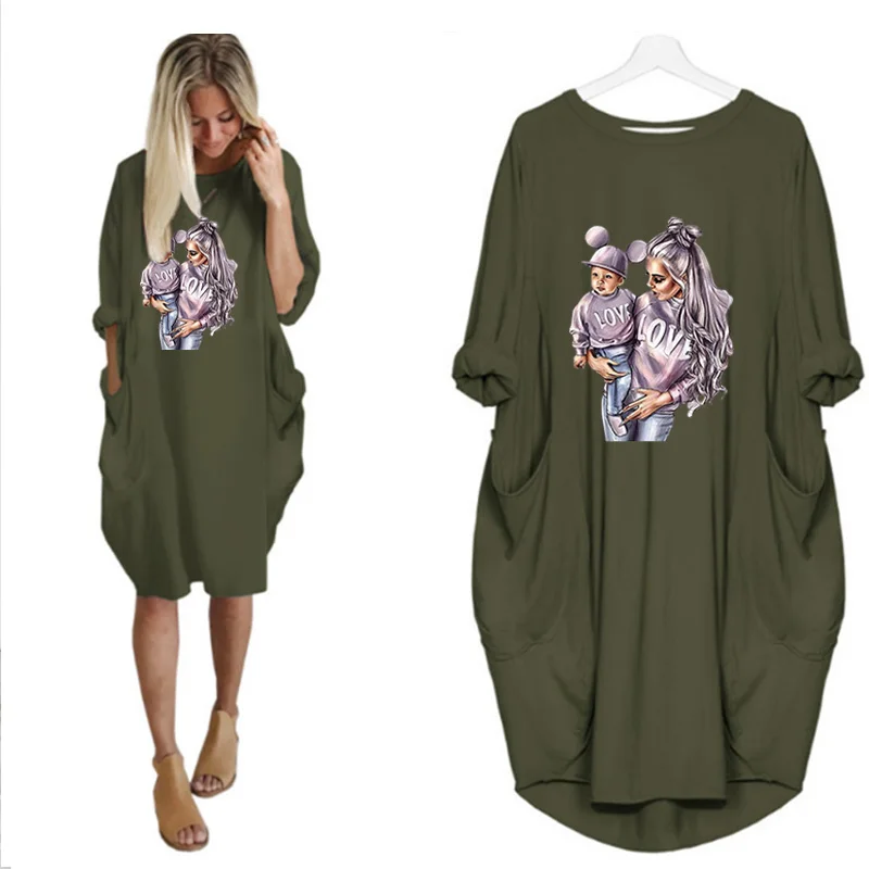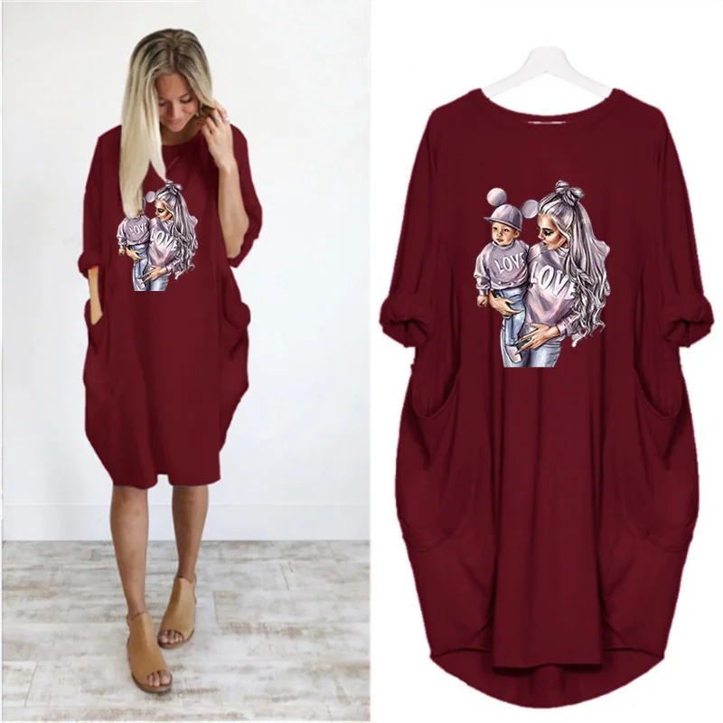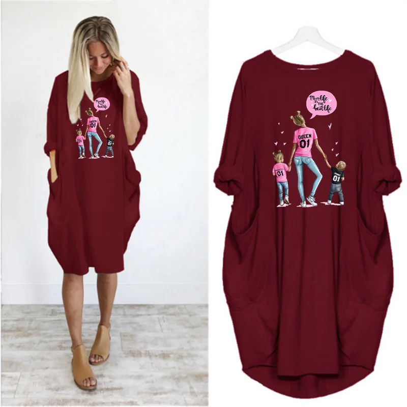 Женское платье с длинным рукавом, с круглым вырезом, до колена