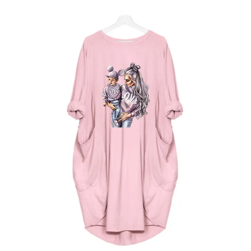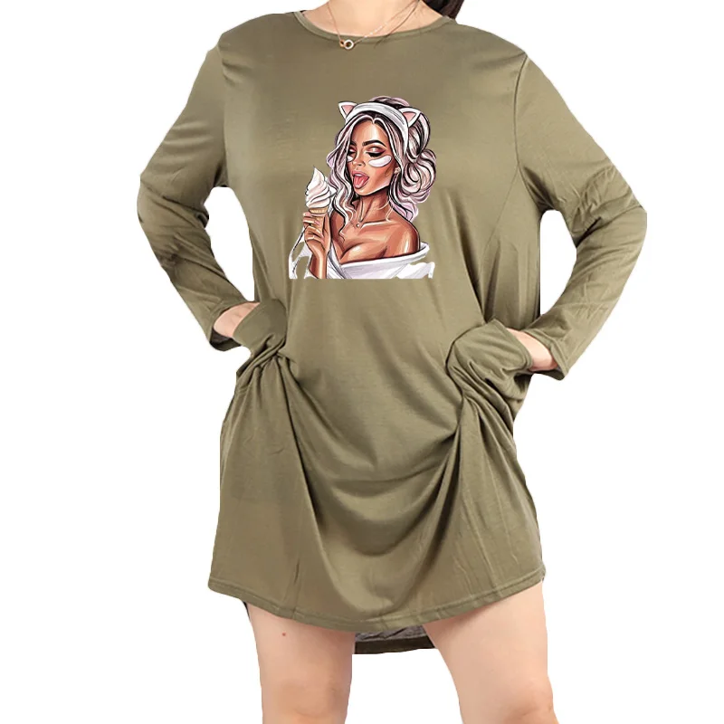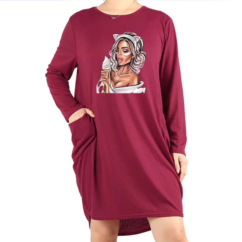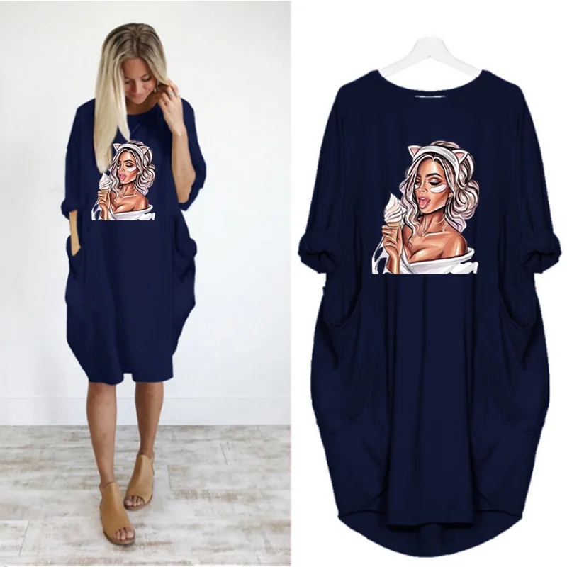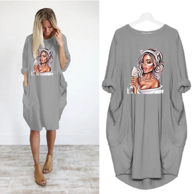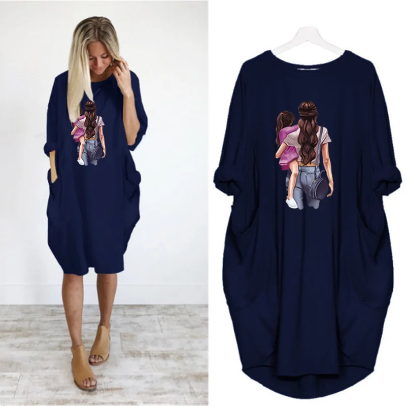 Женское платье с длинным рукавом, с круглым вырезом, до колена