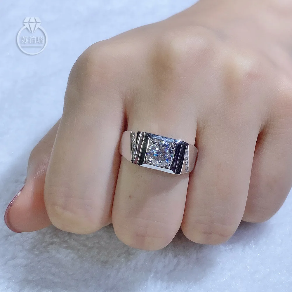 1-3CT кольцо из настоящего муассанита для мужчин, классическое прос...