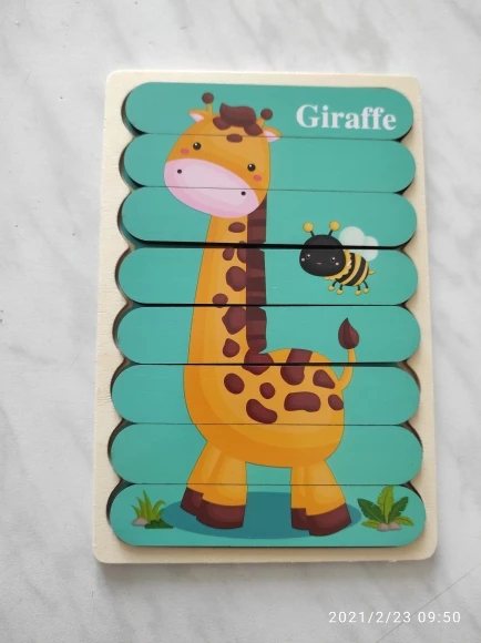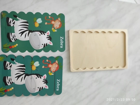 Заказ пришел за 20 дней, заказала две головоломки с полосками. Очень понравились. Полоски крепкие. Есть деревянное поле, куда вложена двусторонняя картинка, которая помогает правильно собрать пазл.