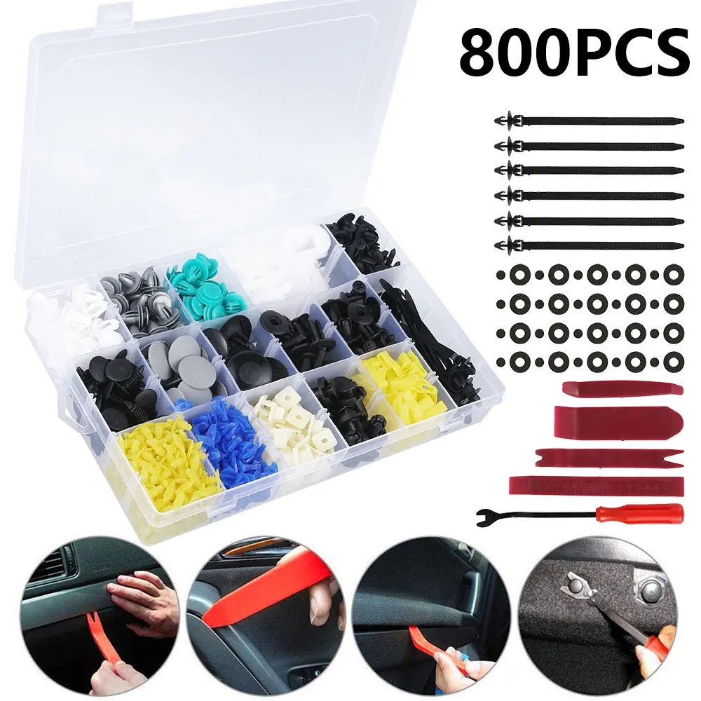 800 шт. автомобильный Пластик заклепки автомобиля Fender Бампер внутренняя отделка пуш-ап зажимы набор автомобильные аксессуары с инструментом двери Панель вкладыш