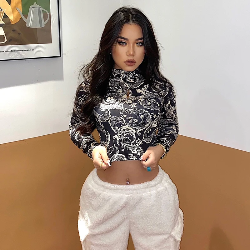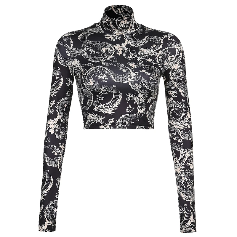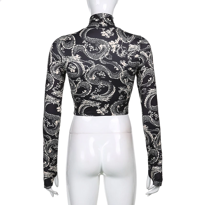 Кроп-топ Y2K женский с принтом дракона, пикантная модная водолазка ...