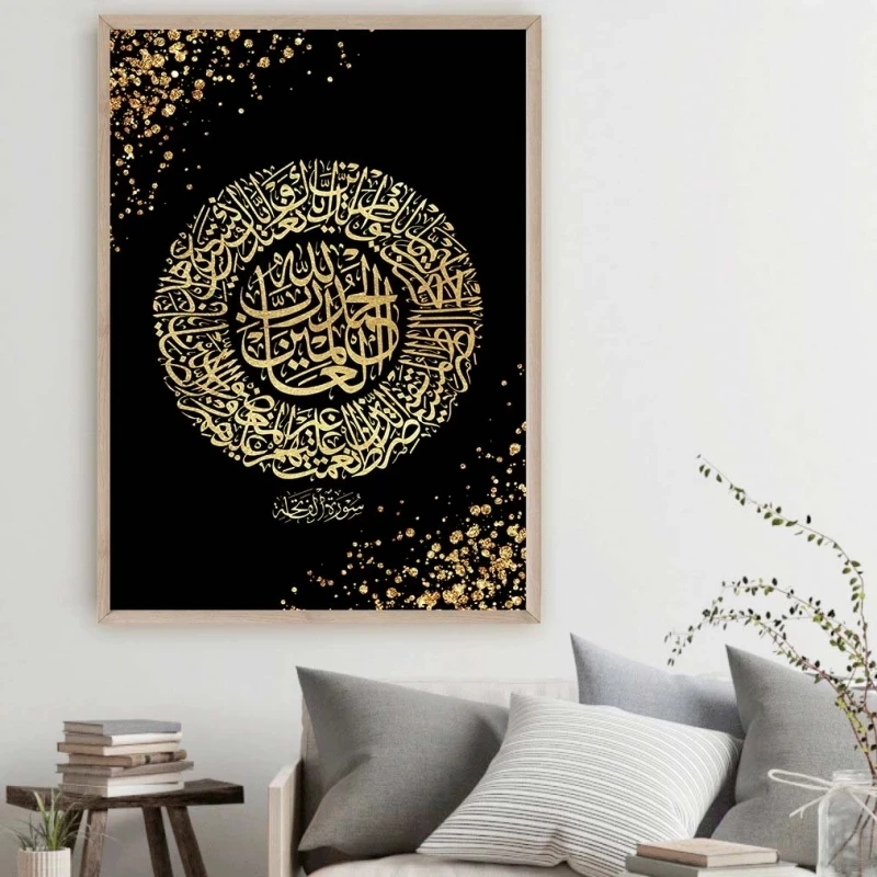 Исламский художественная стена с цитатой плакат Сура Аль Фатиха арабская каллиграфия рамки на холсте религиозное мусульманское искусство стены для домашнего декора