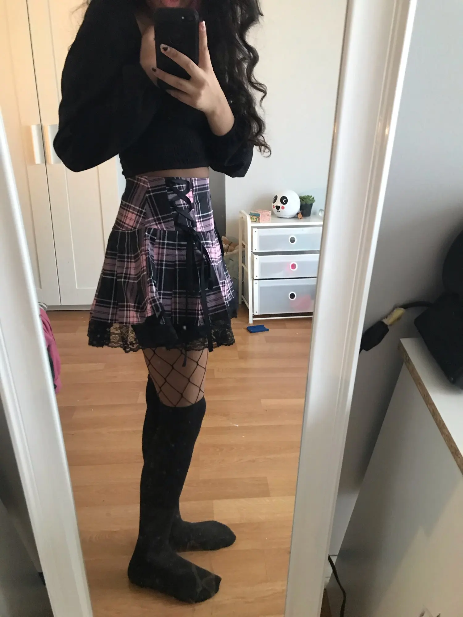 Love omfg im одержима юбкой, хотя, струны не были прикреплены, и я не могу их поместить, а талия немного великовата, но кроме того, я в восторге от этого спасибо!<3