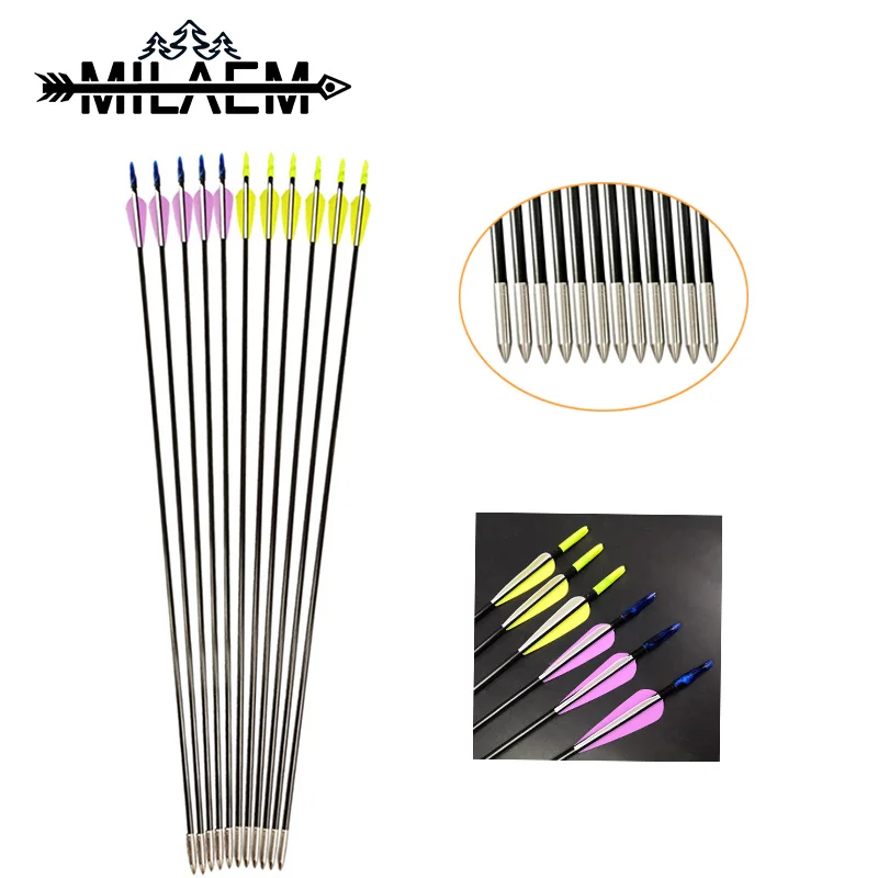 12 шт., Стекловолоконные стрелы для лука, аксессуары для охоты, 74 см, стрела с 3 "резиновым пухом и стрелой