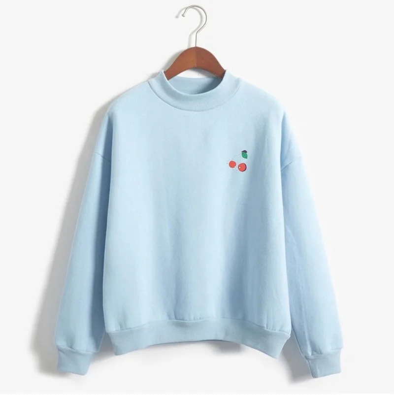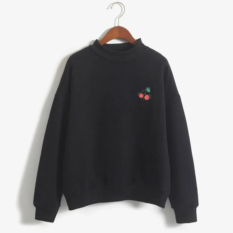 Толстовка Женская с длинным рукавом, флисовый пуловер с принтом вишни, Свободный свитшот в стиле Харадзюку, Осень-зима