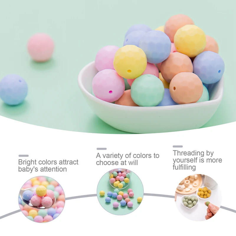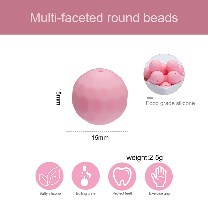 Силиконовые бусины для прорезывания зубов для детей, 20 шт., 15 мм, «сделай сам», браслет-цепочка для соски, не содержит бисфенола А, многогранные силиконовые бусины, игрушка для кормления зубов