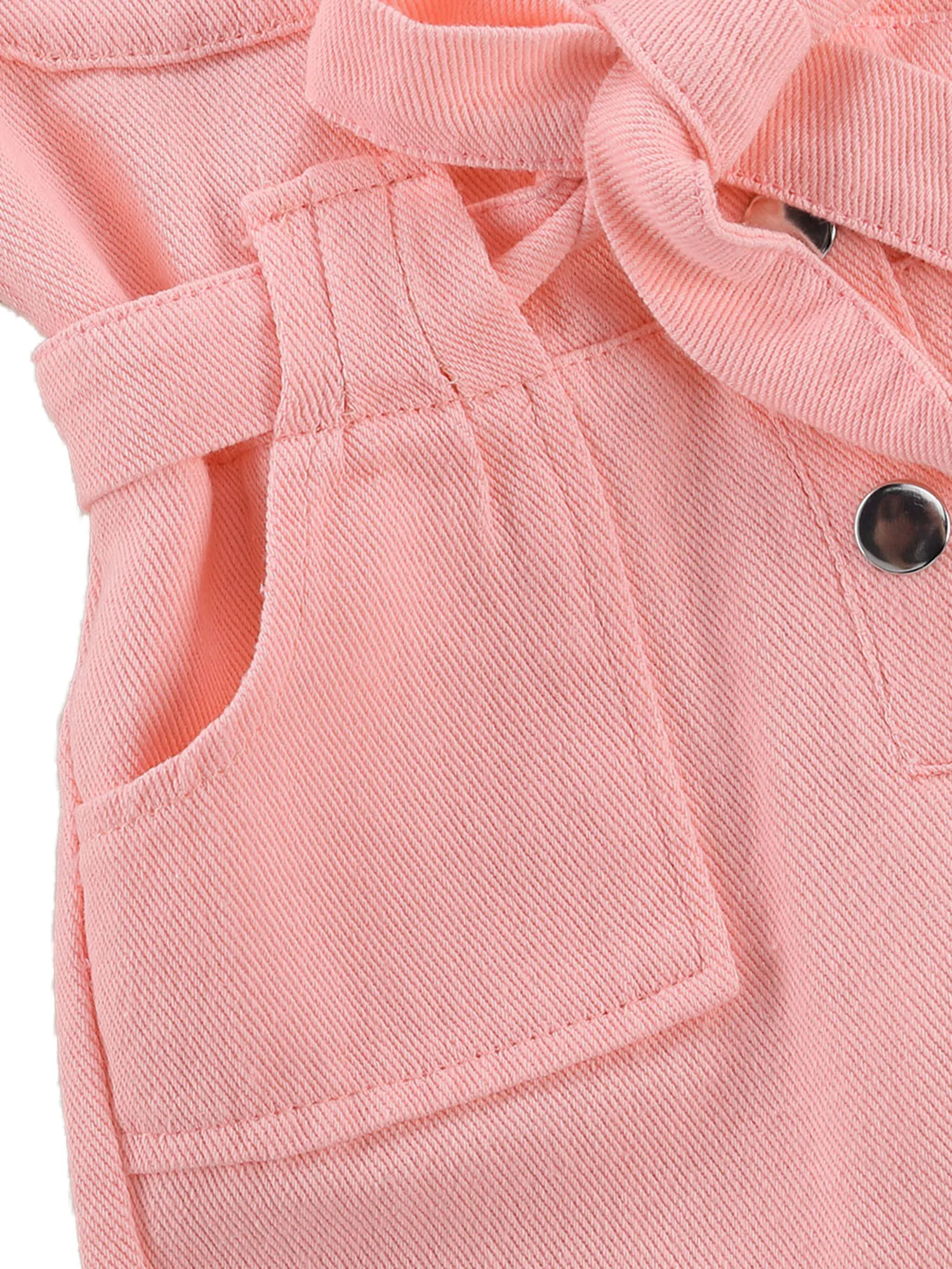Комбинезон детский джинсовый, с коротким рукавом и отложным воротником