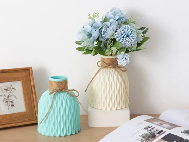 Антикерамические ваза для украшения интерьера современные пластиковые вазы для цветов, скандинавский Свадебный декор из ротанга, небьющаяся простая корзина