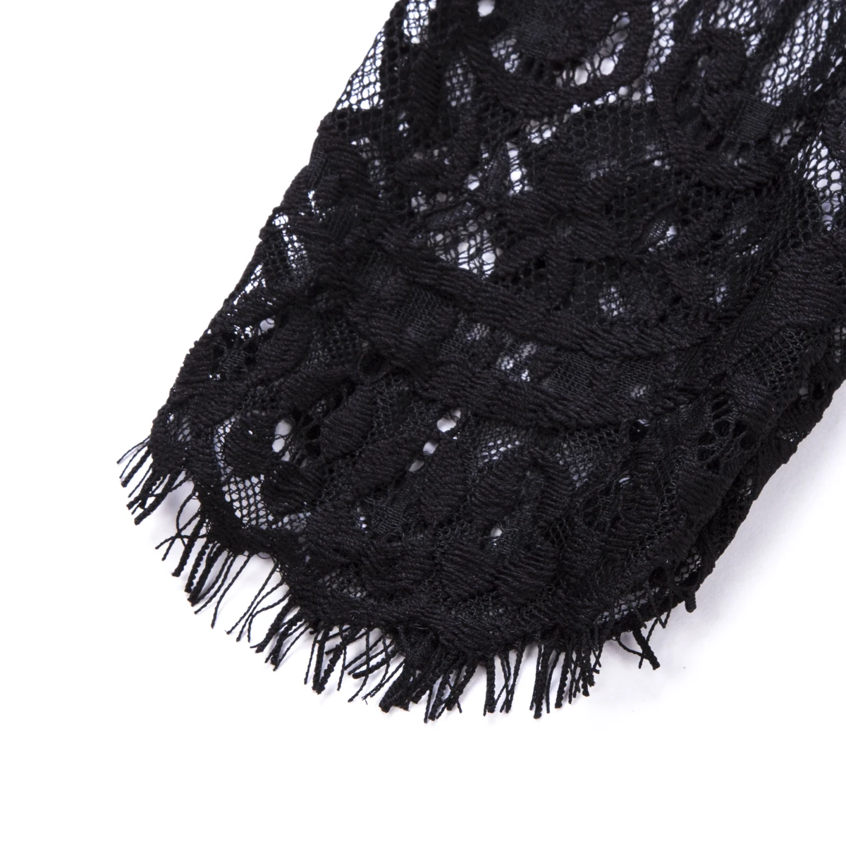Женская кружевная блузка, черная блузка с длинным рукавом и V-образ...