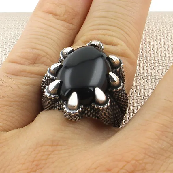 Овальный камневый черный оникс, мужское серебряное кольцо с драконом, изготовленное в Турции, однотонное искусственное серебро