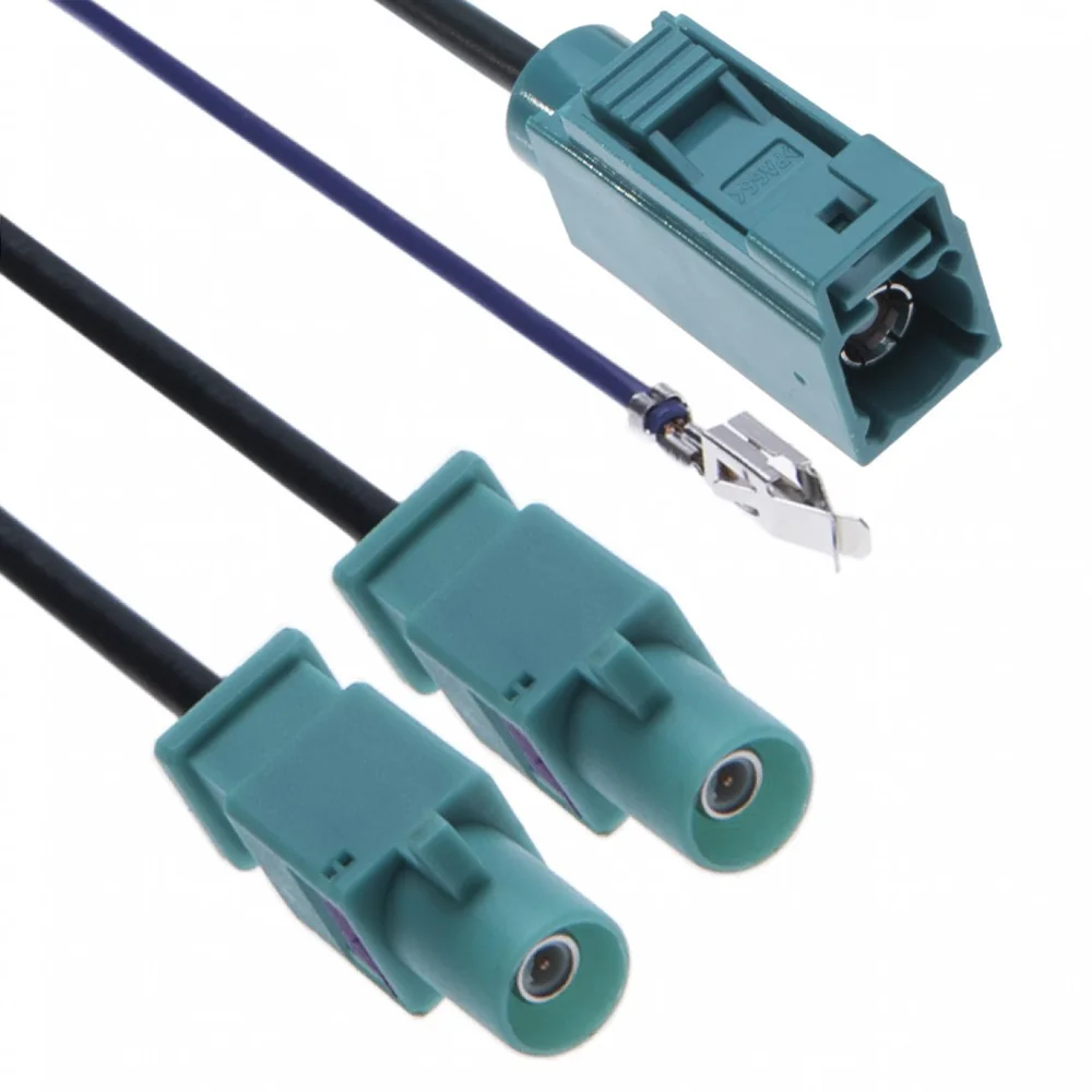 Автомобильная радиосистема разнесенных сигналов, 1 гнездо-2 штекера, двойная антенна Fakra, кабель-переходник для VW, Audi, DVD, головное устройство