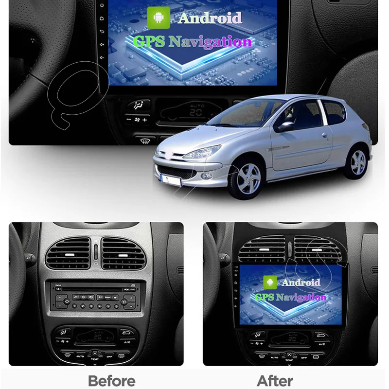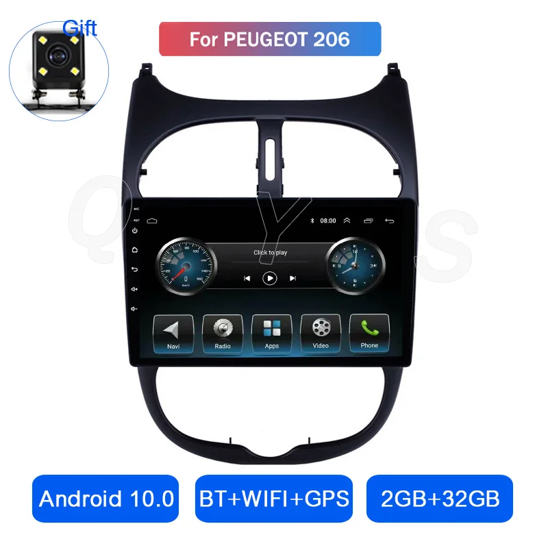 Автомагнитола на Android 10, мультимедийный плеер с сенсорным экраном, четырехъядерный Стерео Авторадио 2 ГБ + 32 ГБ для Peugeot 206, GPS, навигация с большим экраном