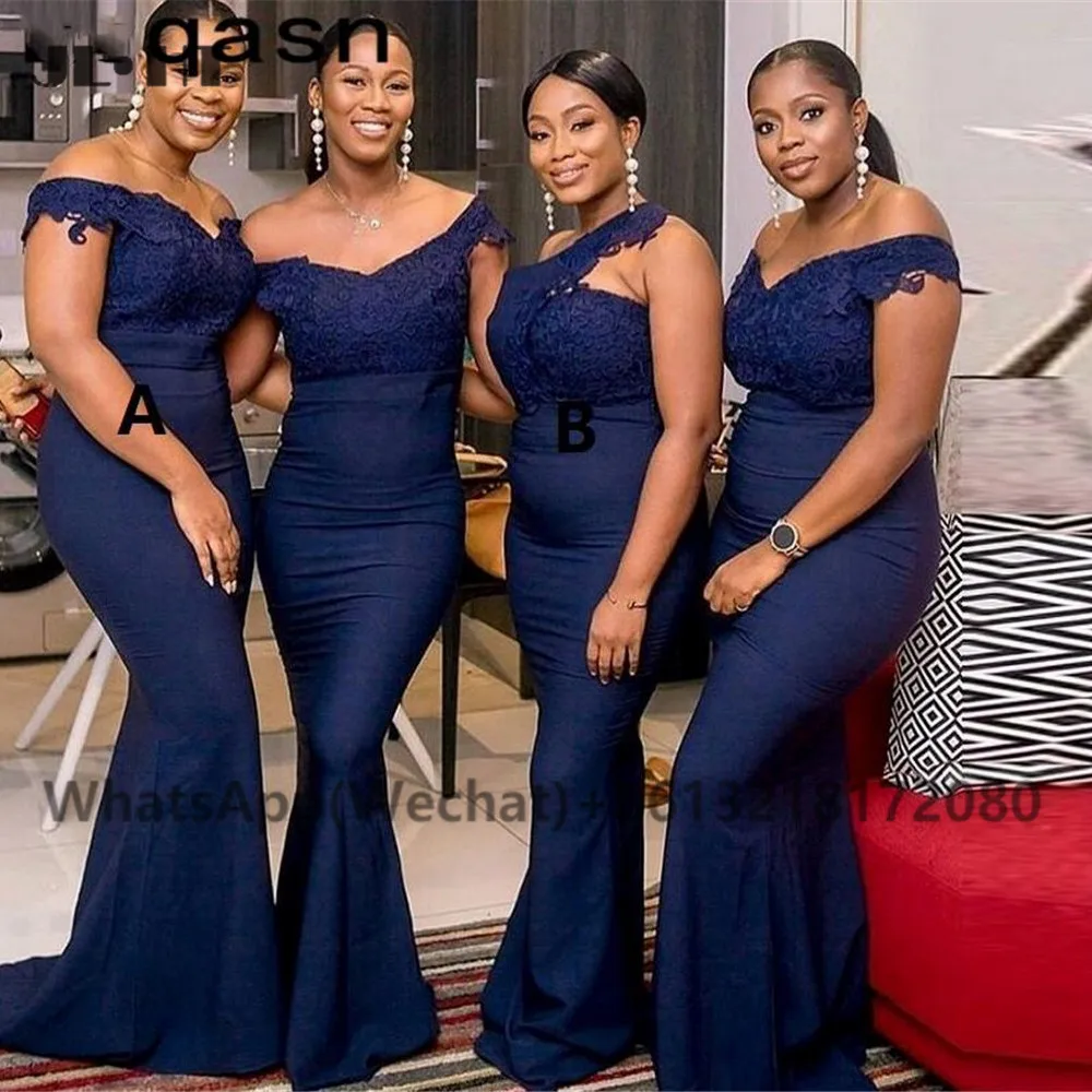 Темно-синее платье подружки невесты с юбкой-годе, длинное кружевное платье с аппликацией, африканские черные платья подружки невесты для свадебной вечеринки, платье подружки невесты