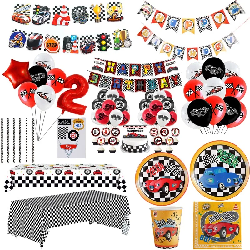 Набор одноразовой посуды для мальчиков, гоночный автомобиль, день рождения, гонка, чашка, тарелка, шарики для бейби шауэра, принадлежности для Декор-баннер
