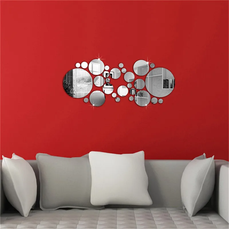 3D Зеркальная Наклейка на стену, 26 шт., домашний декор, круглые ук...