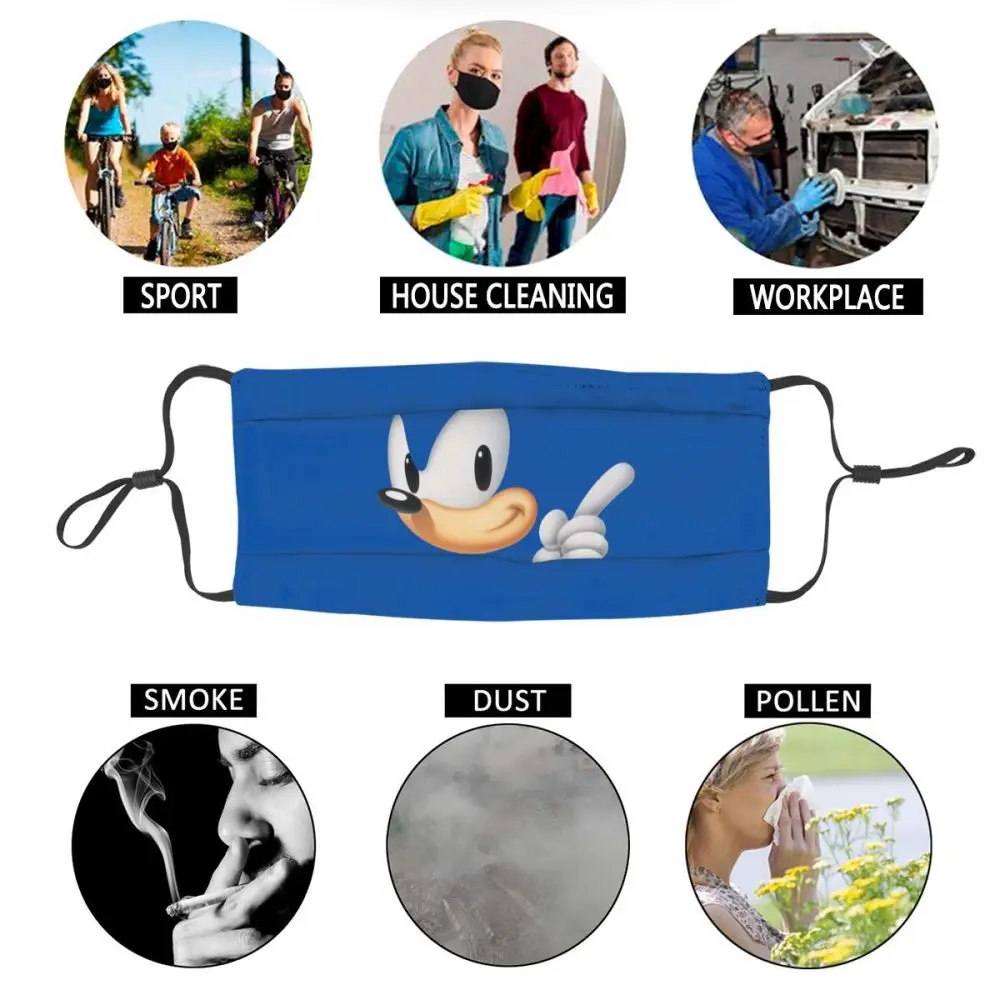 Маски с узором Sonic, многоразовые маски, противотуманные и пылевые маски, защитные маски с фильтрами, респираторные маски