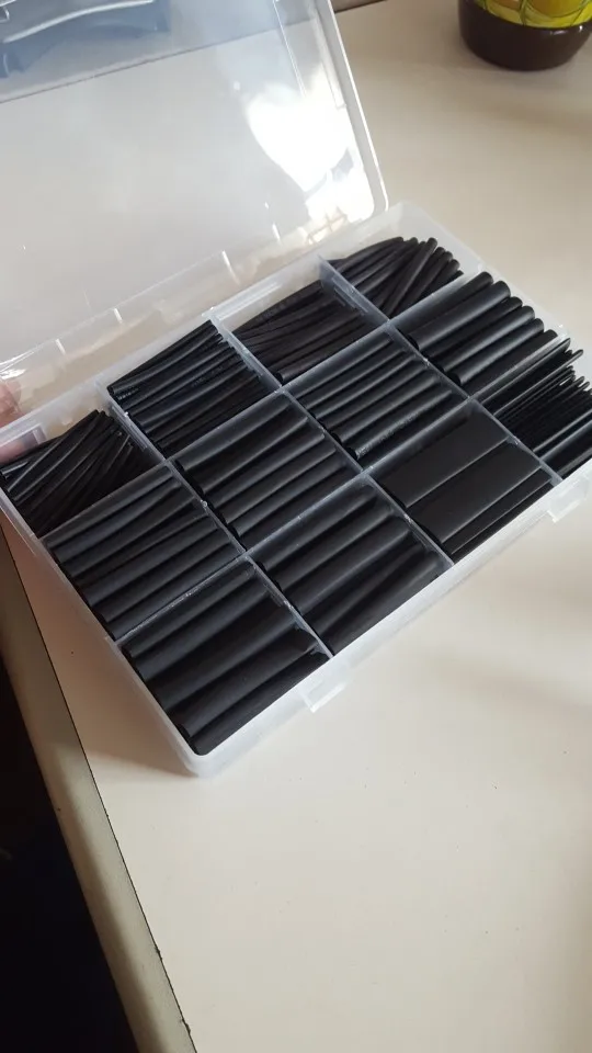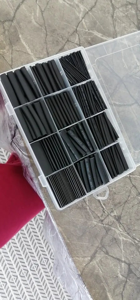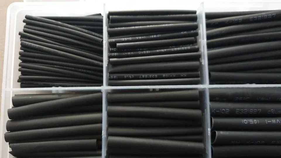Термоусадочная трубка в черной коробке, 625 шт., набор для сборки электроники 2:1, изолированные полиолефиновые термоусадочные трубки, кабели и кабельные трубки