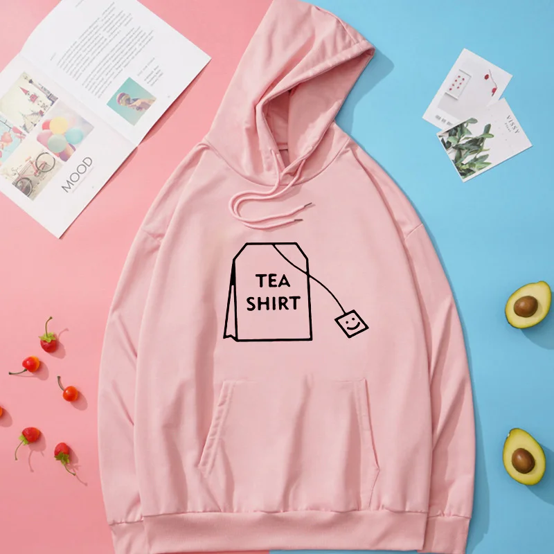 Женская толстовка с капюшоном с принтом чайной рубашки, Kawaii, свободная уличная толстовка, женские простые пуловеры с капюшоном, теплые топы в корейском стиле