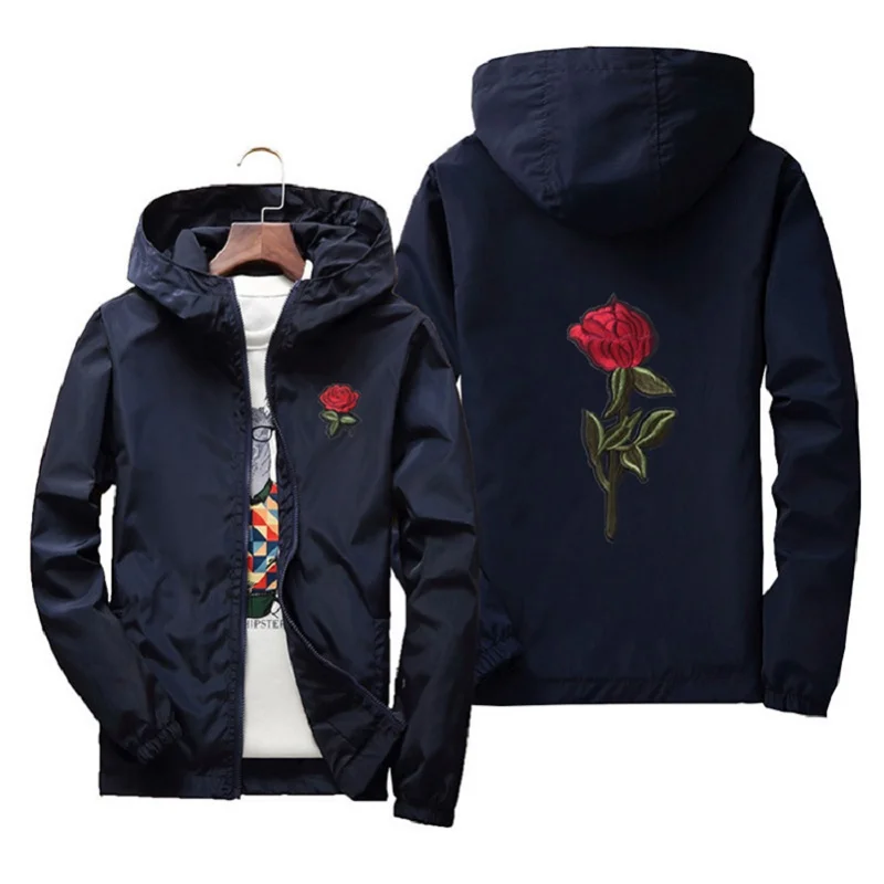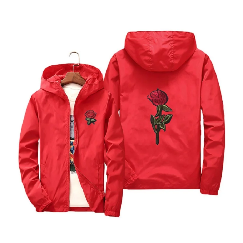 Мужские и женские куртки с вышивкой розы, тонкая уличная одежда, ку...