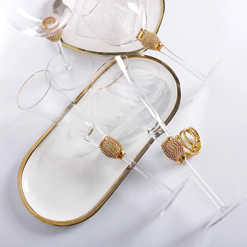 Бокал для вина с золотой окантовкой, алмазная посуда для напитков, ...