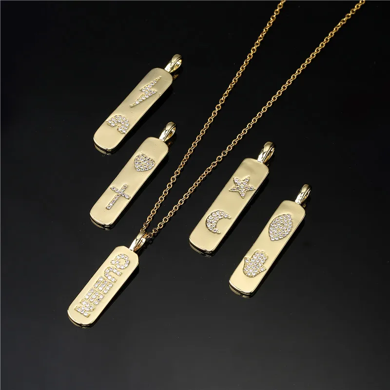 Женское геометрическое ожерелье с подвеской, ожерелье золотого цвета с кулоном в виде пальмы, молнии, Креста, сердца и букв с фианитами, 2021