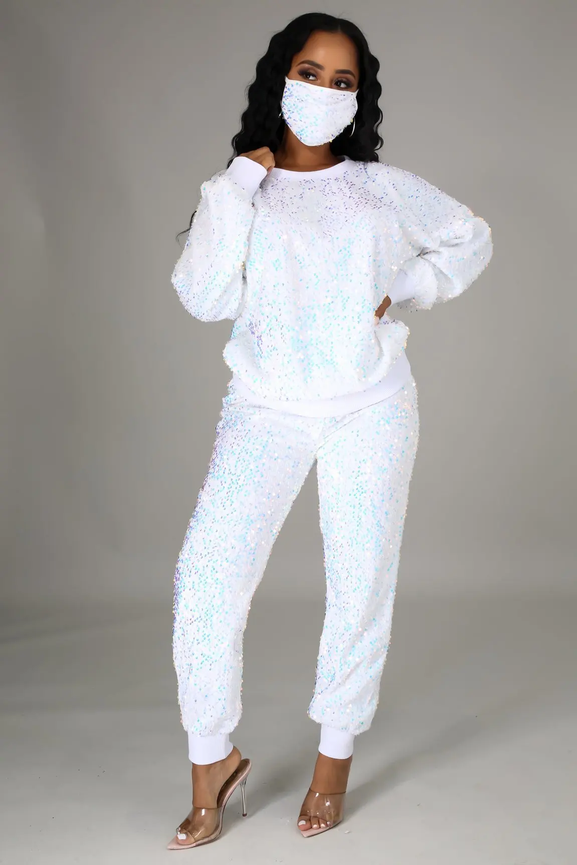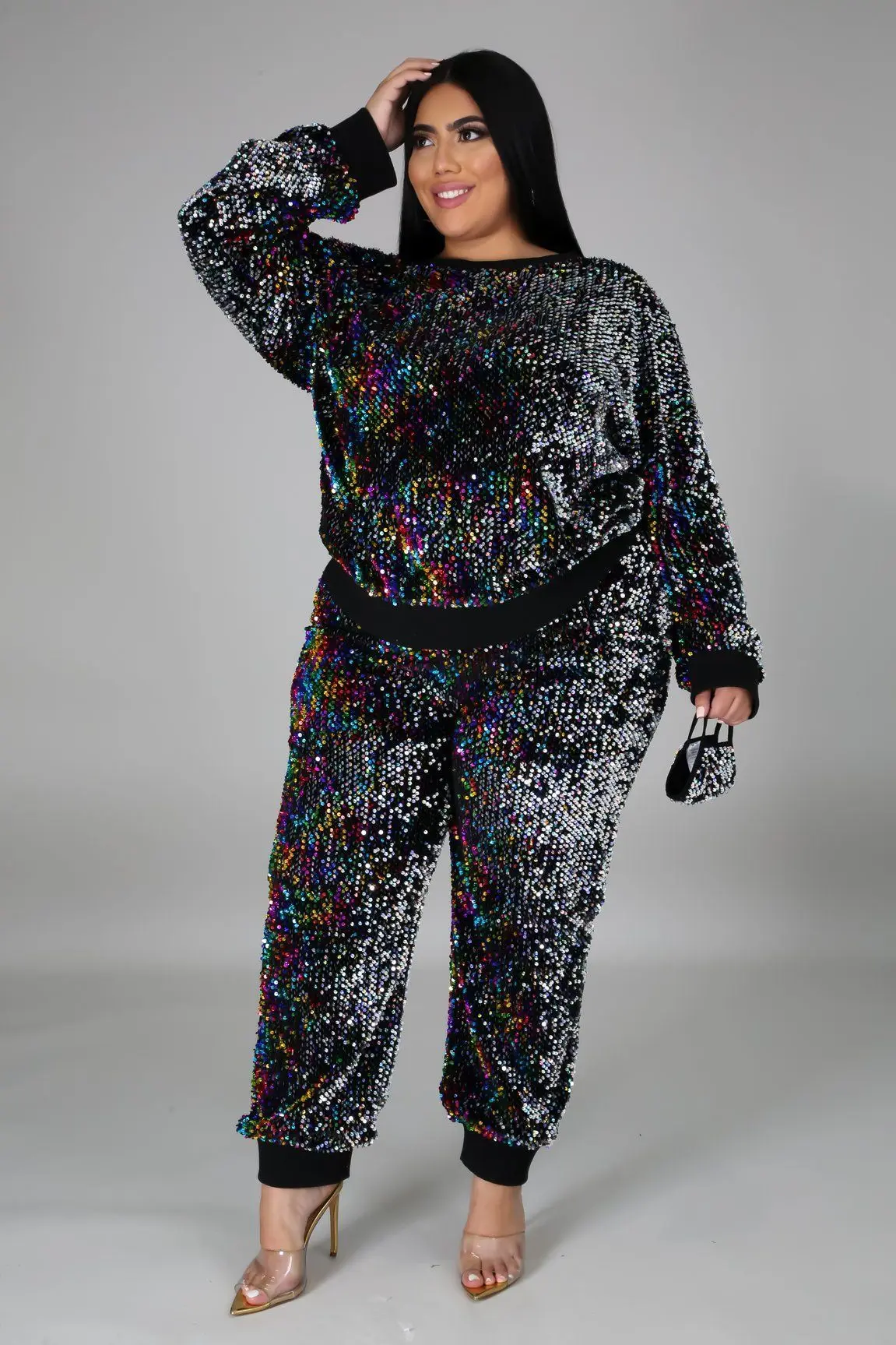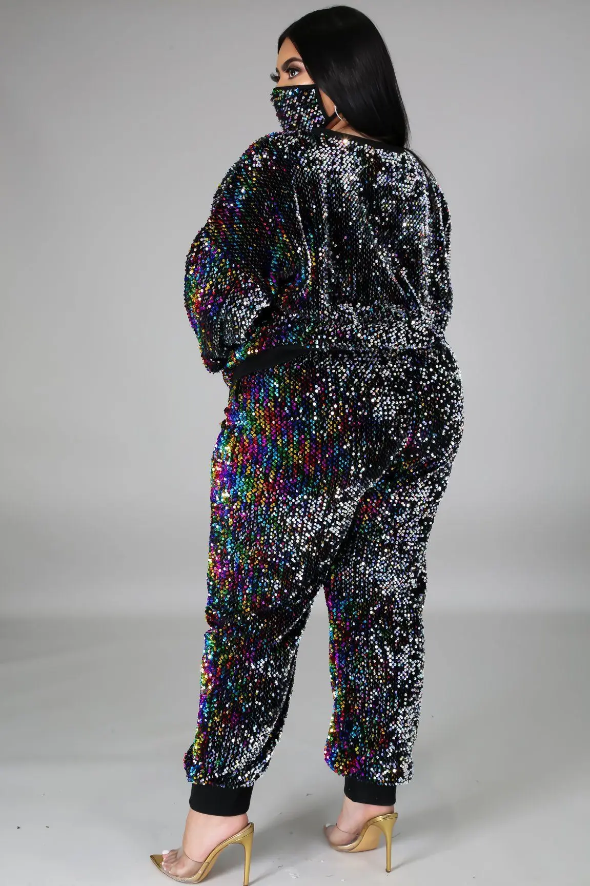 Комплект из двух предметов, женская одежда, модная вечерняя одежда с блестками и блестками, пуловер с длинным рукавом и брюки, подходящий костюм с маской