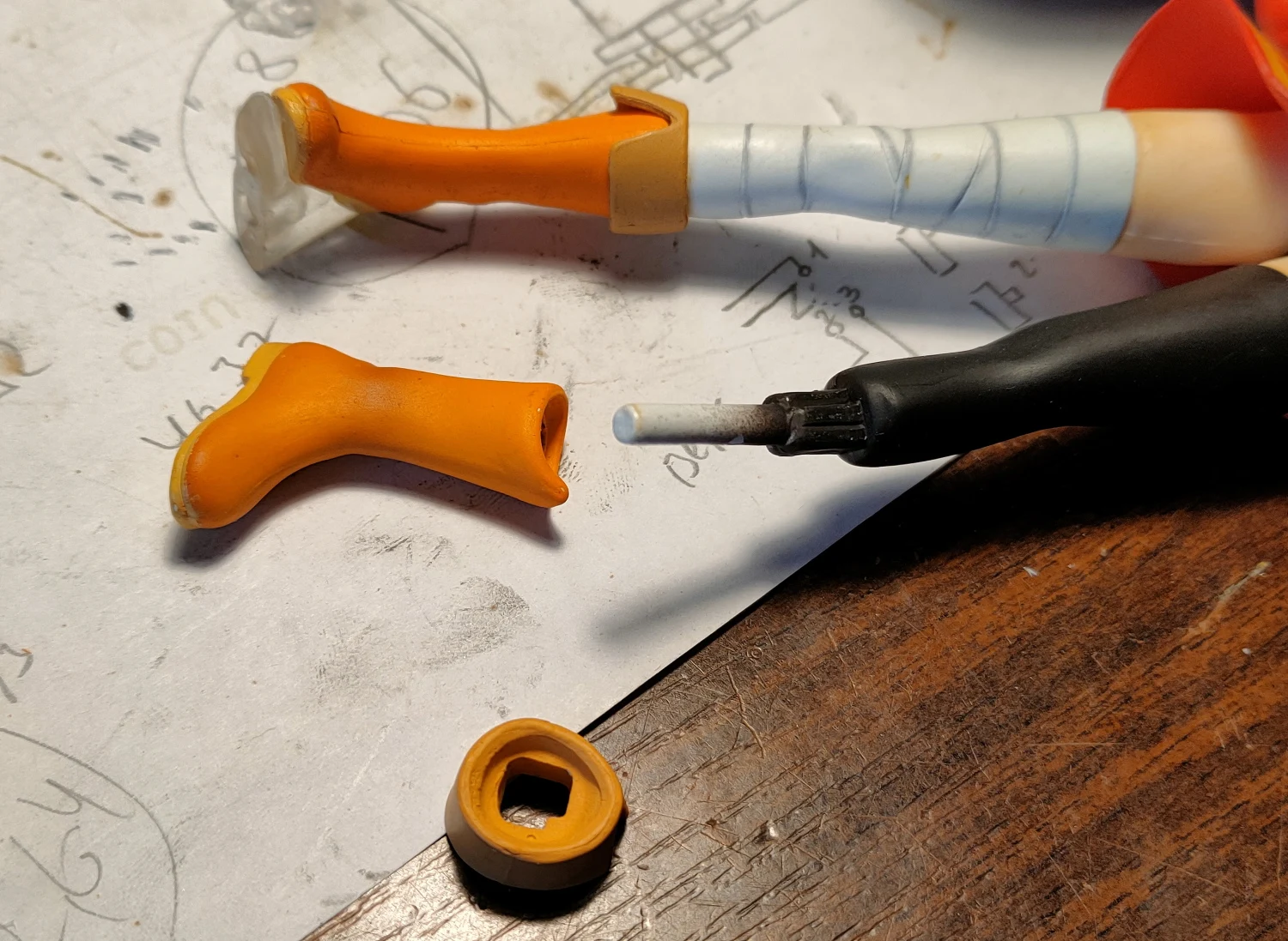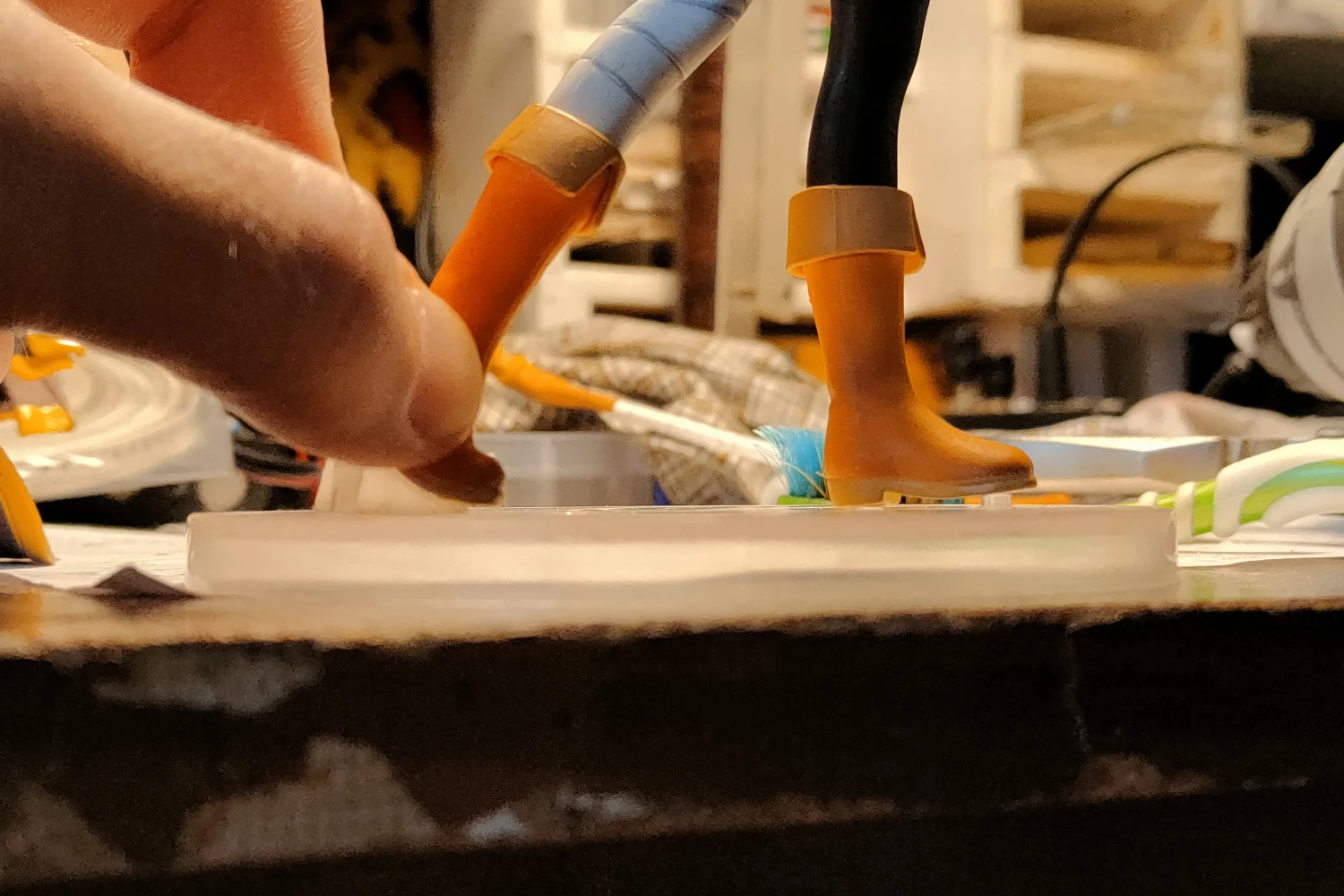 Весьма годная фигурка, детальность неплоха, есть огрехи: на шляпе треугольники "уехали" в одном месте, рука с посохом так себе, НО, качество изготовления заставило помучаться. Штырь в основании правой ноги оказался большего диаметра чем отверстие и упорно не хотел вставляться. Рассверлил. Оказалось, что штыри не только толще, но и длиннее на 1 мм, досверлил отверстие. Сюрприз, а основание ног то в разных плоскостях, одну надеваешь на штырь - другая поднимается. Решил приклеить, капнул немного и штыри растворились... Что за пластик такой у основания?!? Плюнул, просверлил пару отверстий и прикрутил саморезиками. Держится железно. Пока мучался с этим, "снялся" ботинок на левой ноге, пришлось тоже клеить.