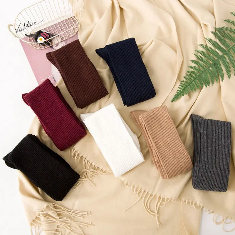 Женские трикотажные хлопковые чулки, 7 цветов, мягкие, теплые, однотонные, один размер