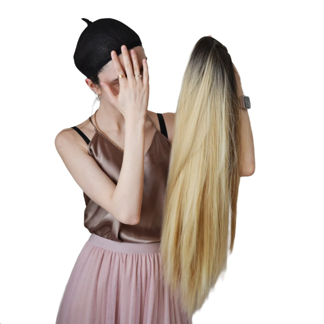 Красивый парик из качественного искусственного Волоса Если вы хотите сменить временно свой образ не нанося вред своим волосам то это ваш вариант. Заказала шикарного качества парик. Длина волос - 66 см. Выполнен из высокотемпературного волокна. В комплекте идёт чулок для волос. Синтетический волос можно мыть, сушить, завивать соблюдая температурный режим (130 градусов) Сначала убираете свои Волосы в хвост, одеваете чулок, затем крепите на крючки к чулочку и своим волосам парик. Парик сидит на голове надежно, размер для меня удобен, не жмёт и не давит. Волосы лёгкие, удобные. Цвет так же смотрится натурально, благодаря тёмным корням и к световому переходу к кончикам. Смотрятся вживую очень достойно. Очень довольна