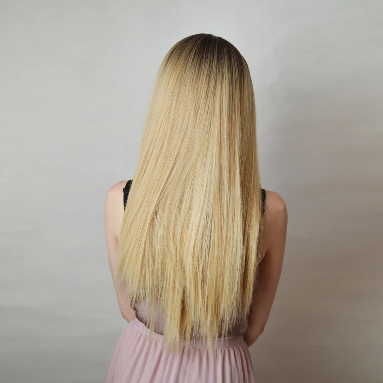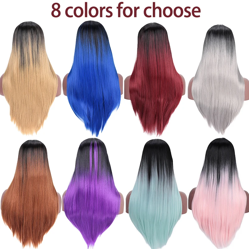 Парик SHANGKE Женский, длинный, прямой, черный, из термостойкого волокна, двухцветный, для косплея