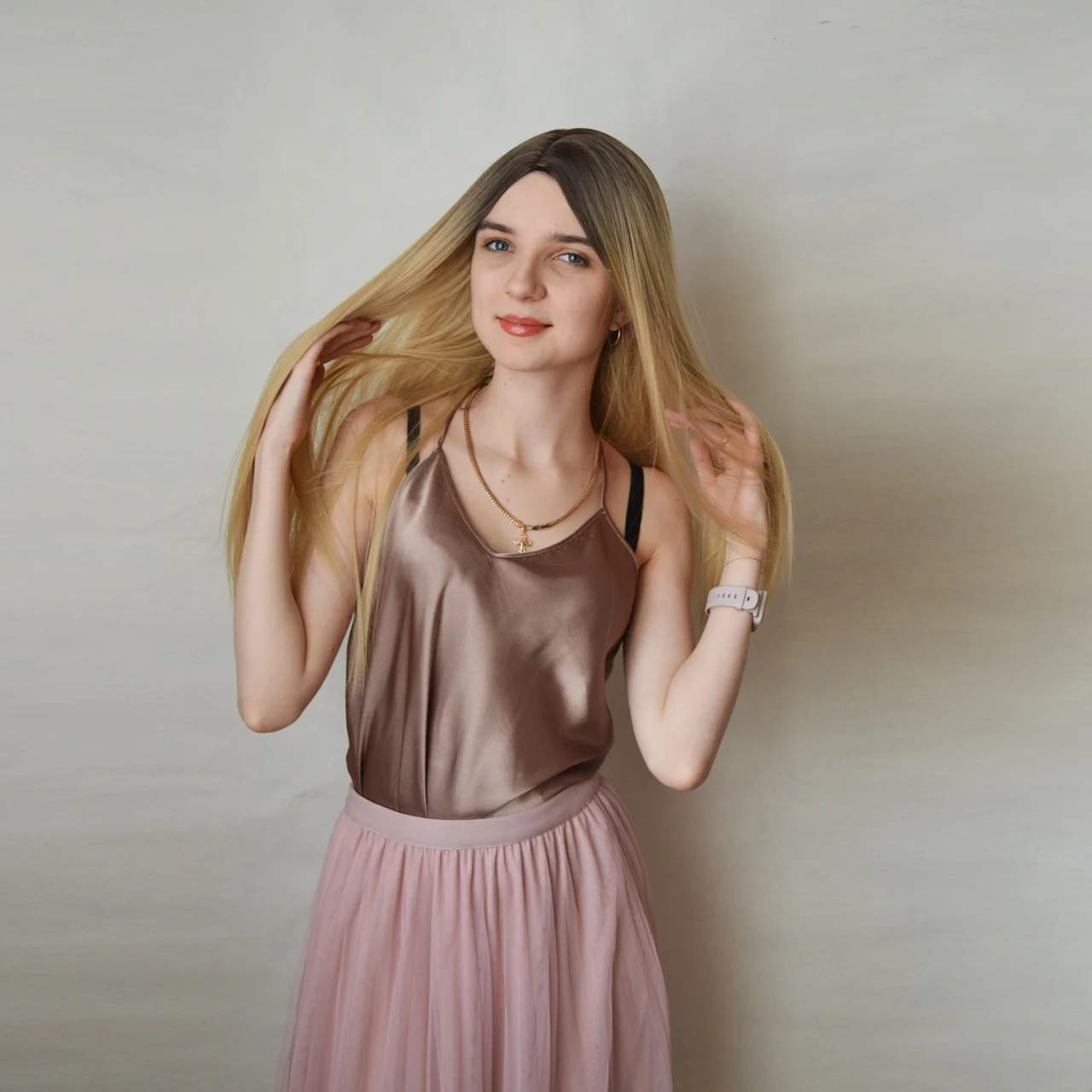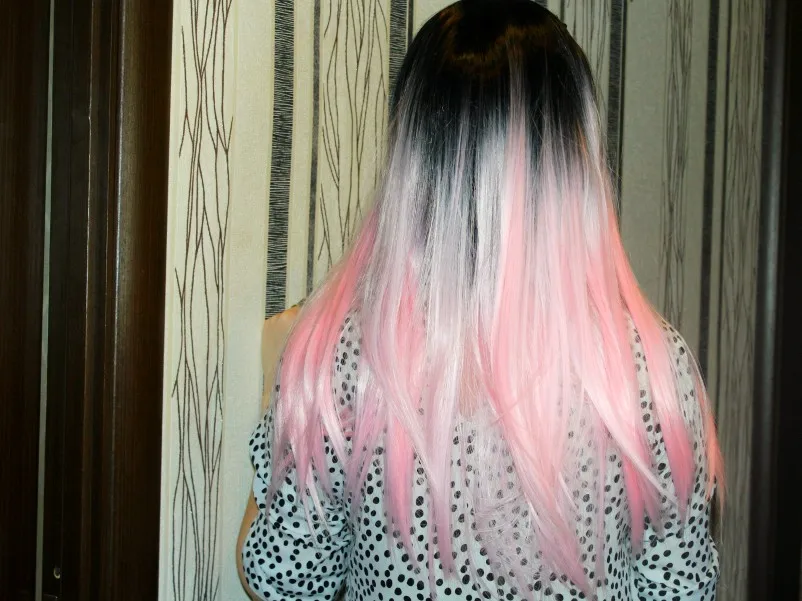 Отличный парик! Волосы невероятно мягкие! Очень красиво и, главное, естественно блестят. Переход от корней к цветному оттенку-мягкий, выглядит натурально. С картинкой на сайте оттенок совпадает абсолютно точно. Хоть это и искусственный материал, но смотрится хорошо. Длина волос составляет- 66см (это,кстати, единственный вариант длины). В комплекте есть еще и сеточка , чтобы убирать свои волосы. Внутри сделано все качественно. Так же есть застежка на резинке. Посылка отслеживалась и долетела до меня достаточно быстро. Упаковано всё тщательно: в зип-пакет, картонные бортики, сеточка. В подарок продавец положил чокер и тату наклейки. Хотите попробовать новый образ, тогда вам этот вариант отлично подойдёт!