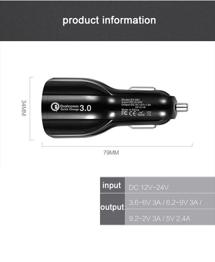 Быстрое Автомобильное зарядное устройство 3,0, автомобильное зарядное устройство с двумя Usb, автомобильный адаптер Usb для iphone 11, Samsung, Xiaomi, Huawei vivo
