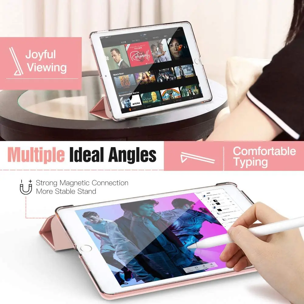 Умный кожаный чехол Trifold для iPad 10,2 7-го 8-го поколения, тонкая прозрачная задняя крышка из поликарбоната для iPad 10,2 2020, чехол с автоматическим сном
