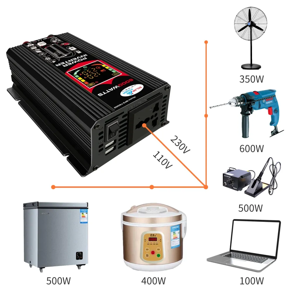 Автомобильный инвертор 6000 Вт, 12 В постоянного тока в В переменного тока для дома или внешнего аварийного питания