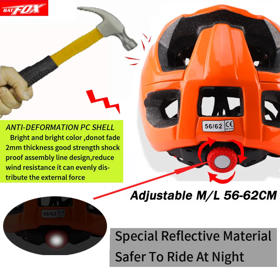 Ульсветильник гоночный велосипедный шлем BATFOX с светильник кой, шлем для горного велосипеда, для спорта на открытом воздухе, для горного и шоссейного велосипеда