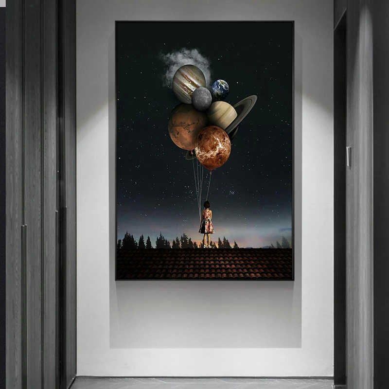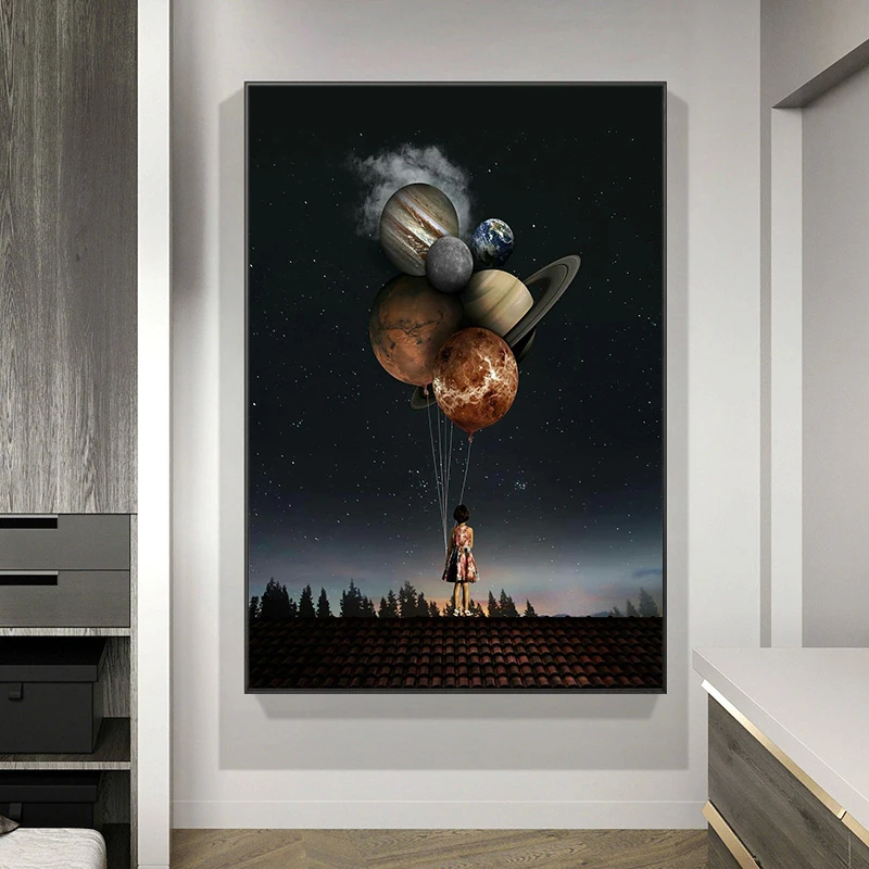 Абстрактная девушка положить воздушный шар холст картины постеры и печать рисунок настенное искусство для гостиной домашний Декор (без рамки)