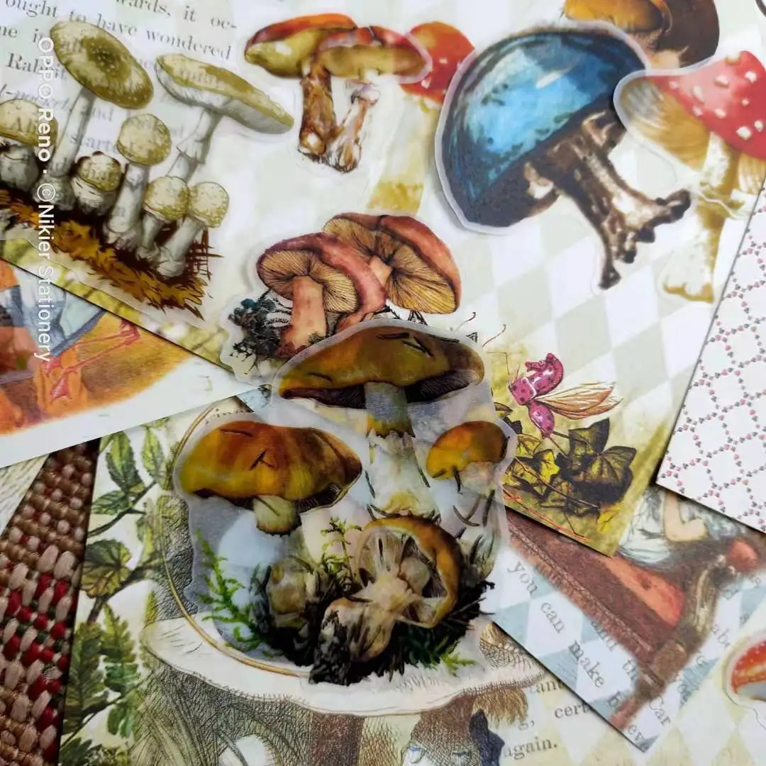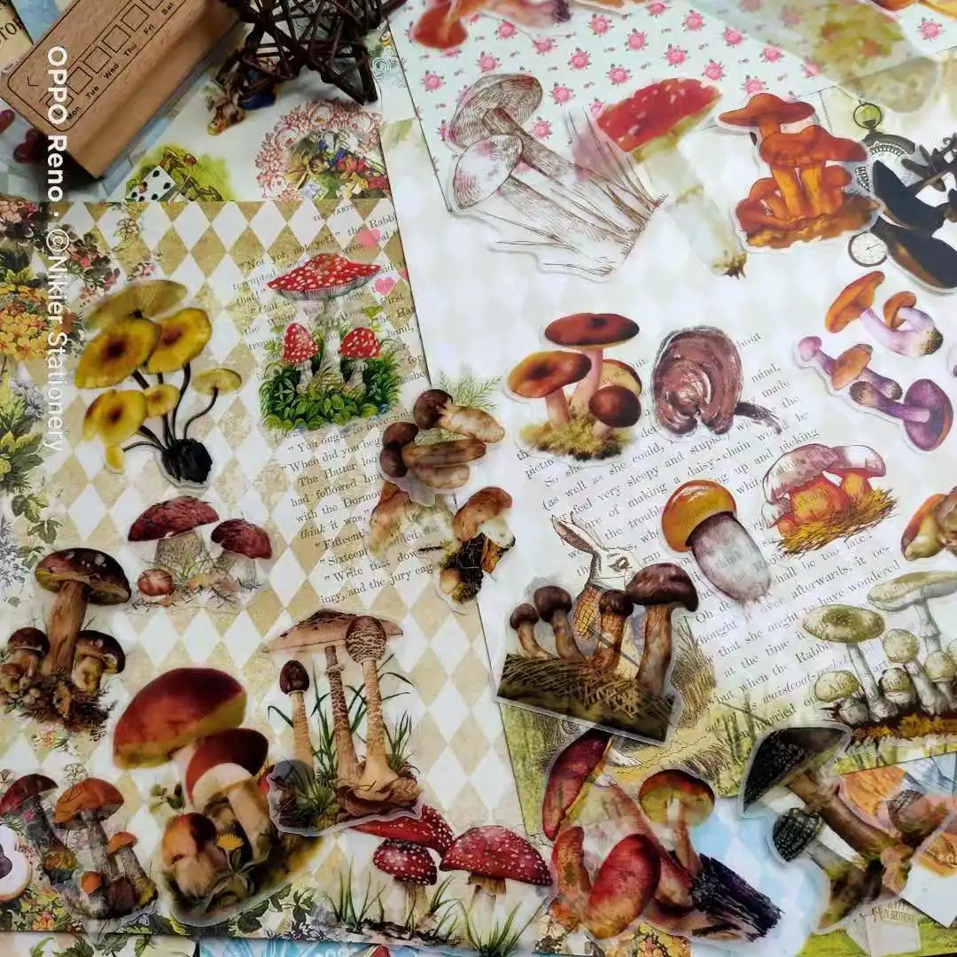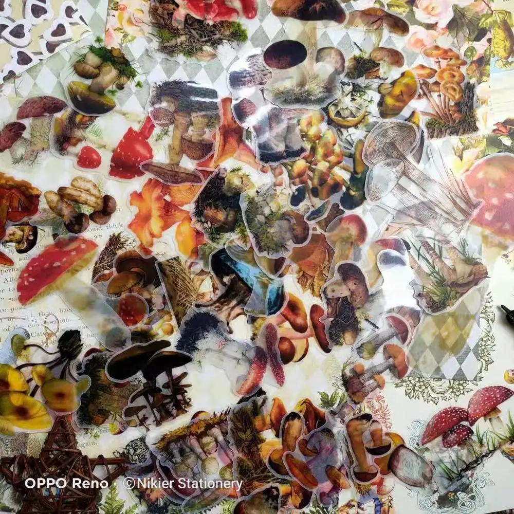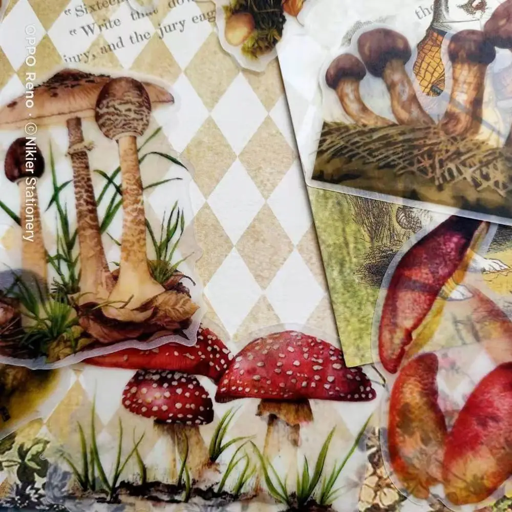 54 шт., винтажные наклейки с серной кислотой, в виде грибов, для ежедневника, журнала, планировщик для скрапбукинга