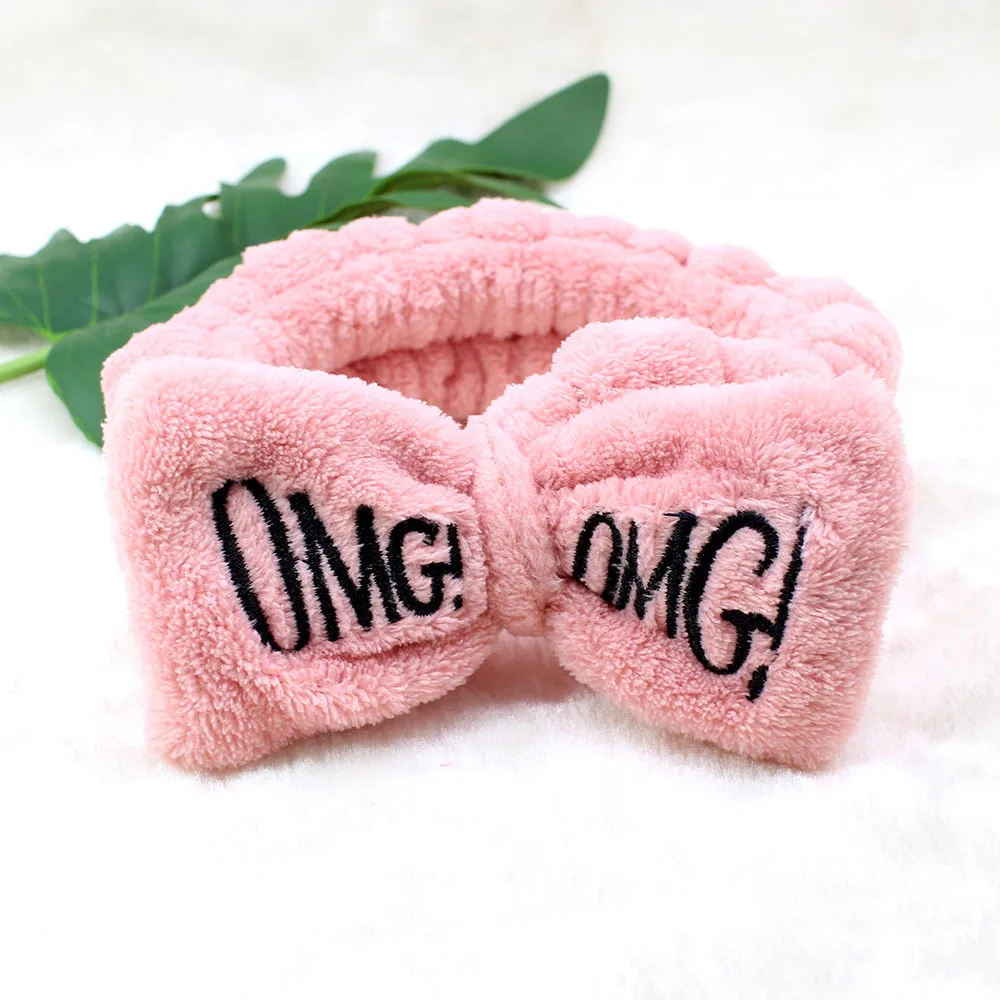 Мягкие флисовые повязки женские с бантом с надписью OMG