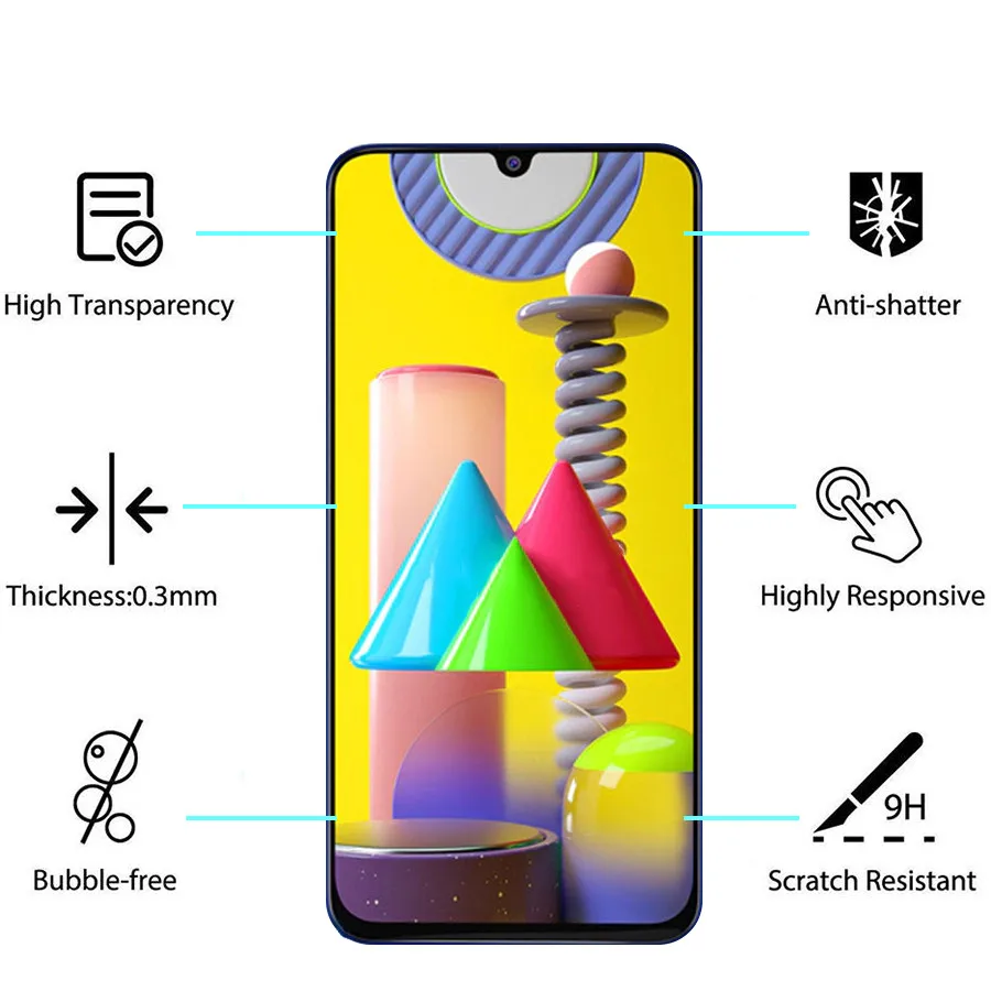 Feature 1For Samsung M31 Tempered glass