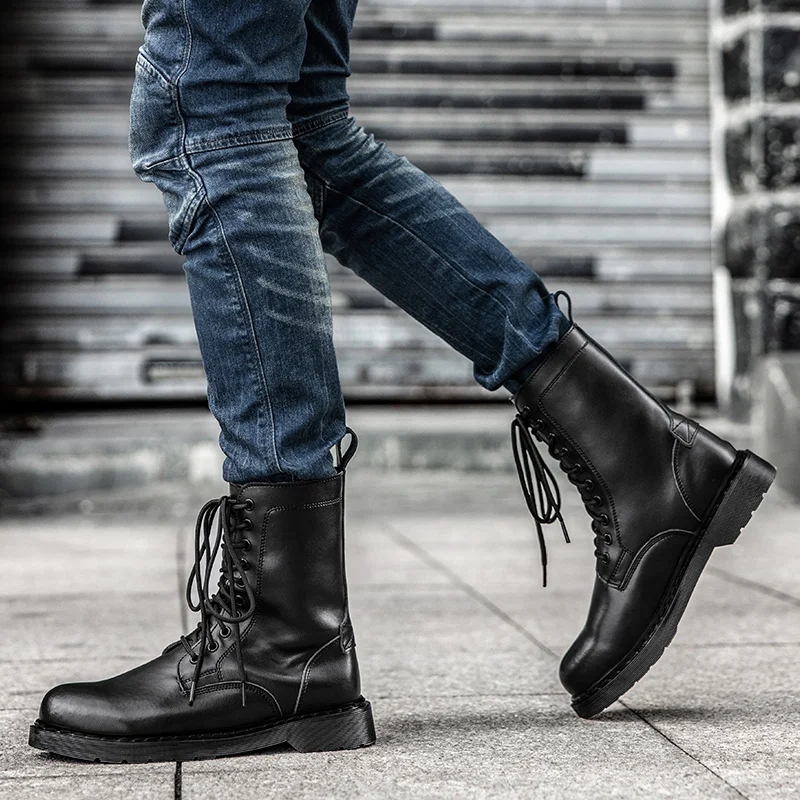 Ботинки мужские мотоциклетные из натуральной кожи, тактические боти...