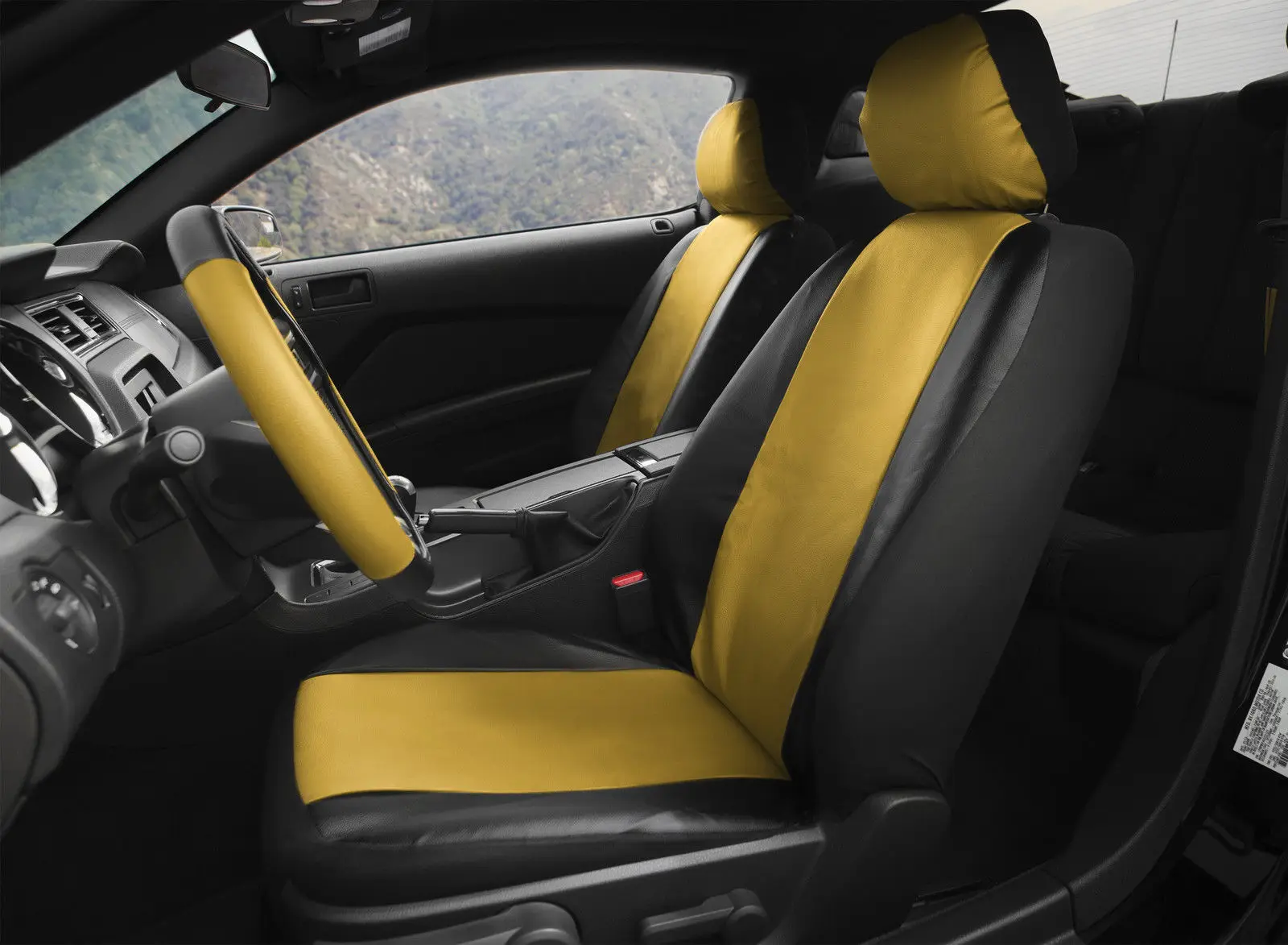 -Автомобильные чехлы на сиденья мгновенно преобразят ваш интерьер, закрывая поврежденные сиденья, а Водонепроницаемая гладкая кожаная поверхность защищает сиденья от брызг, пятен, выцветания и грязи. Отличный выбор для большинства автомобилей.