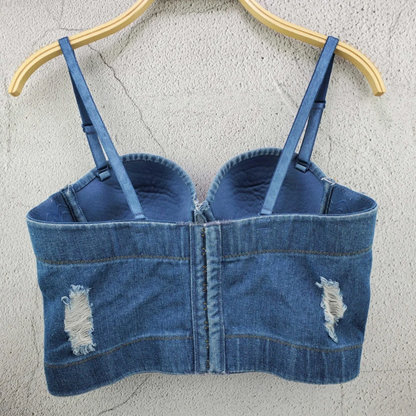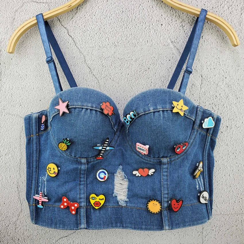 Женский Джинсовый укороченный топ с эффектом пуш-ап, с аппликацией