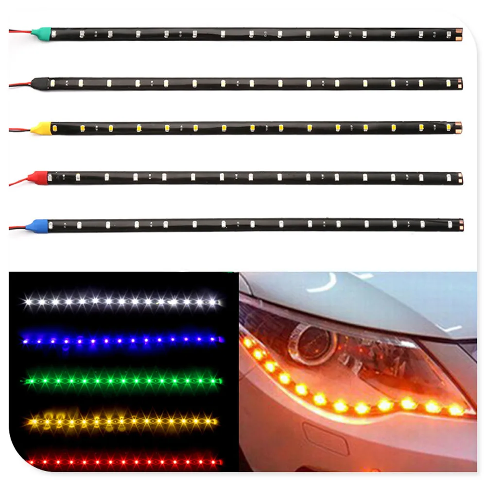2 шт. автомобиль Светодиодные ленты светильник Авто дневные ходовые огни лампы Водонепроницаемый гибкие светодиодные дневные ходовые огни Декоративные Авто-Стайлинг 12 В 15SMD высокое Мощность