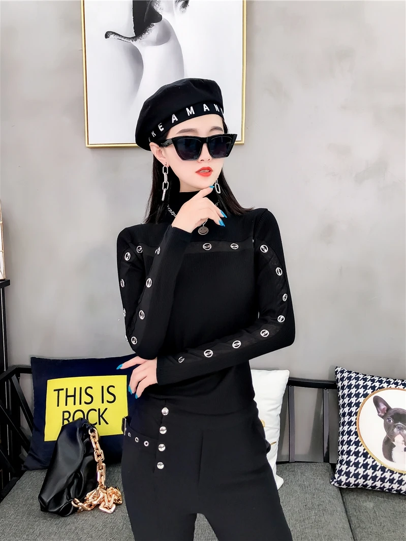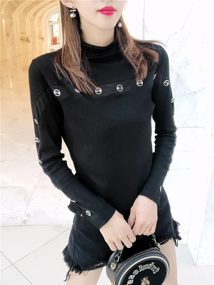 Зимние женские пуловеры с длинным рукавом и высоким воротником, рубашка в стиле Харадзюку, уличная одежда, Женский Топ